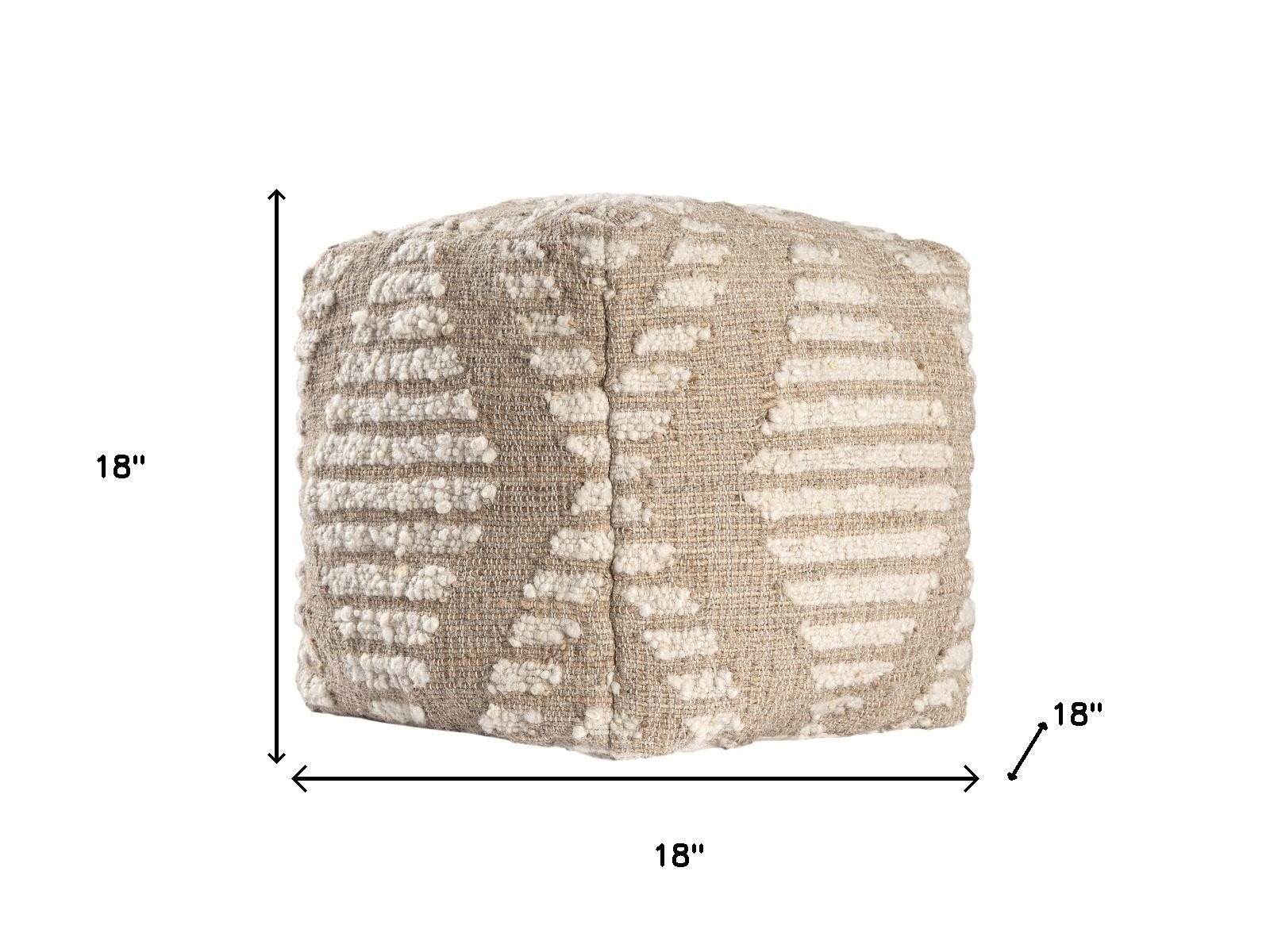 wool geometric cube pouf ottoman, cube pouf ottoman, cotton jute wool geometric cube, geometric cube pouf ottoman, 18" ivory natural cotton jute |