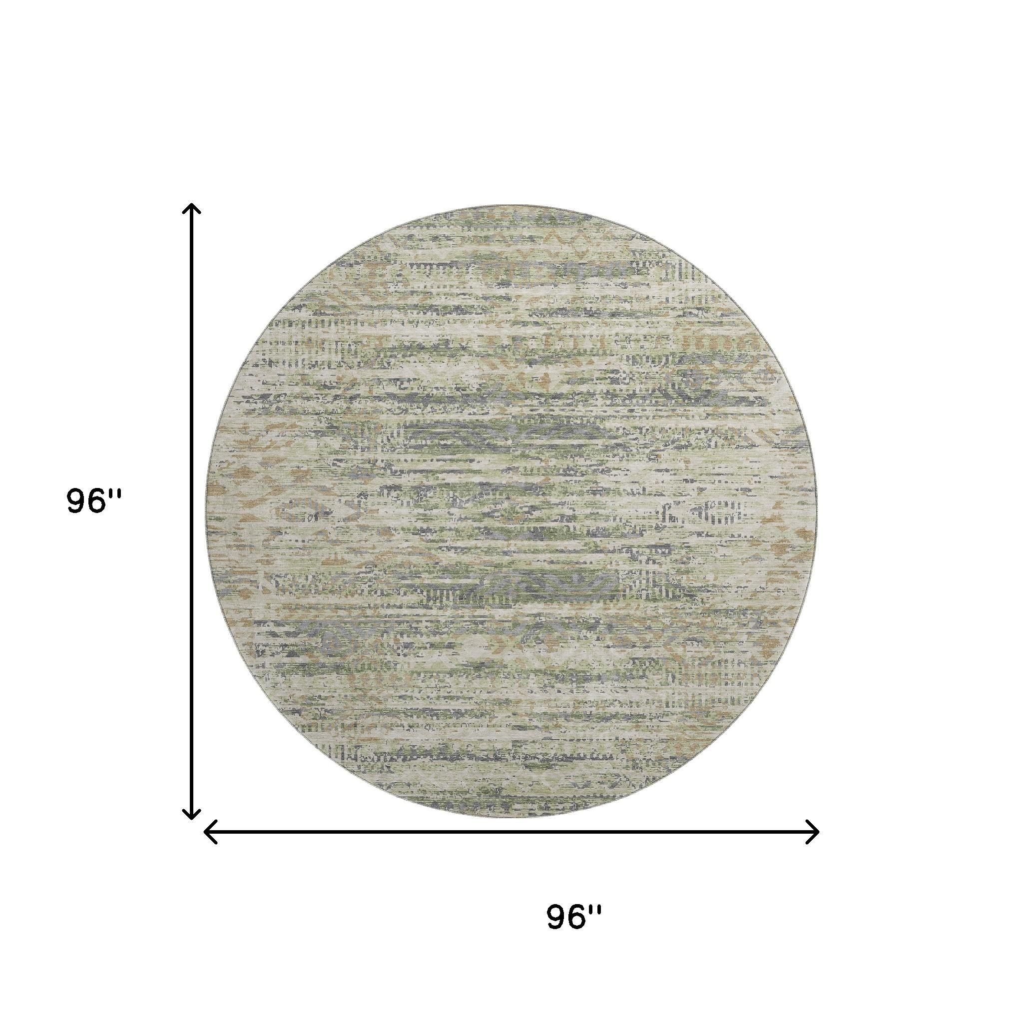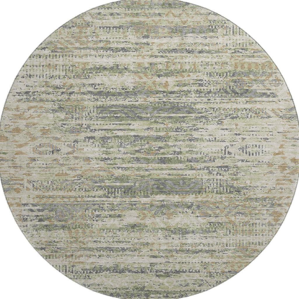 Add some artistry to your room with this 8-foot artichoke green copper and gray moroccan washable round rug with uv protection. Ideal for spaces with kids and pets, this rug is stain resistant to help repel dirt and spilled liquids. Built to last, this rug crafted from polyester fibers is known for its durability and long lasting appeal. Rugs are a great way to showcase your style, hide imperfections, warm your home and reduce noise. This larger sized, transitional styled rug is ready to create a focal point or statement piece in your room. 96.00-inch h x 96.00-inch w x 0.39-inch d.