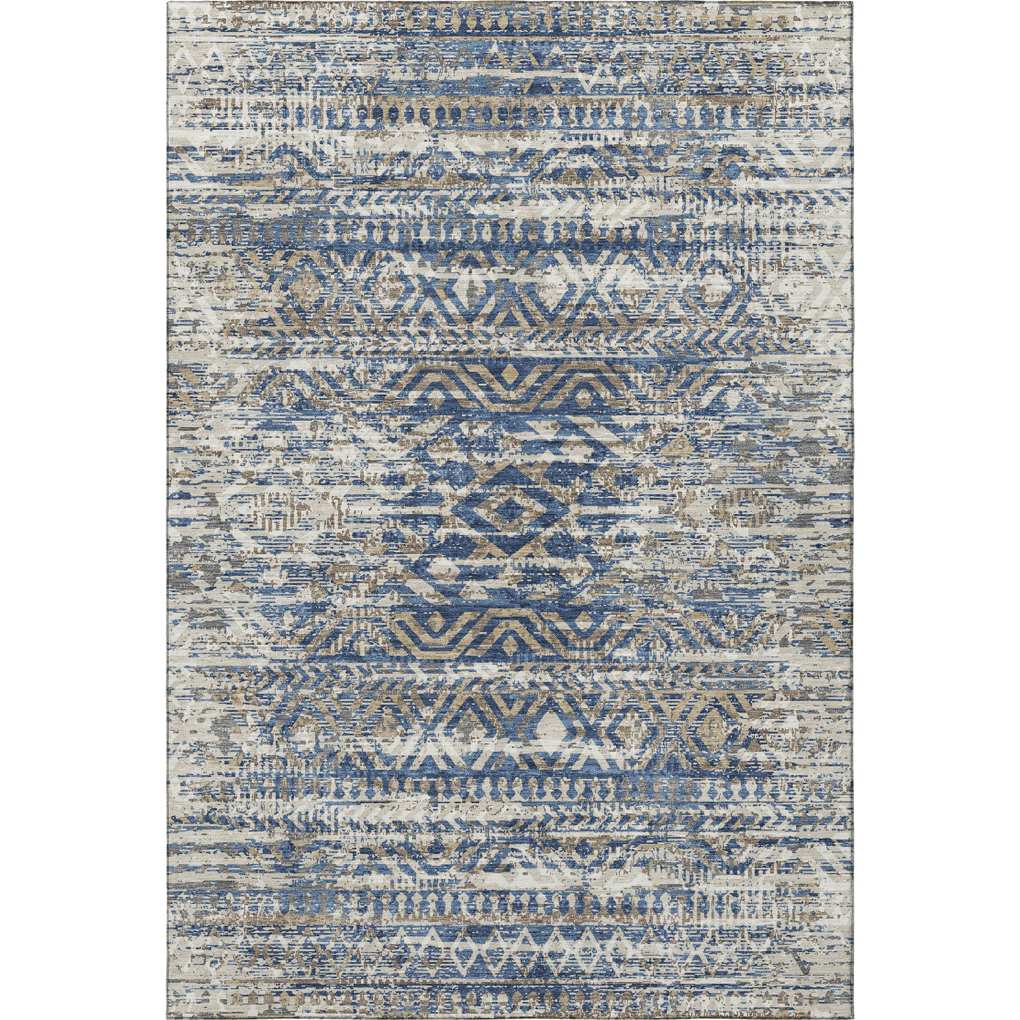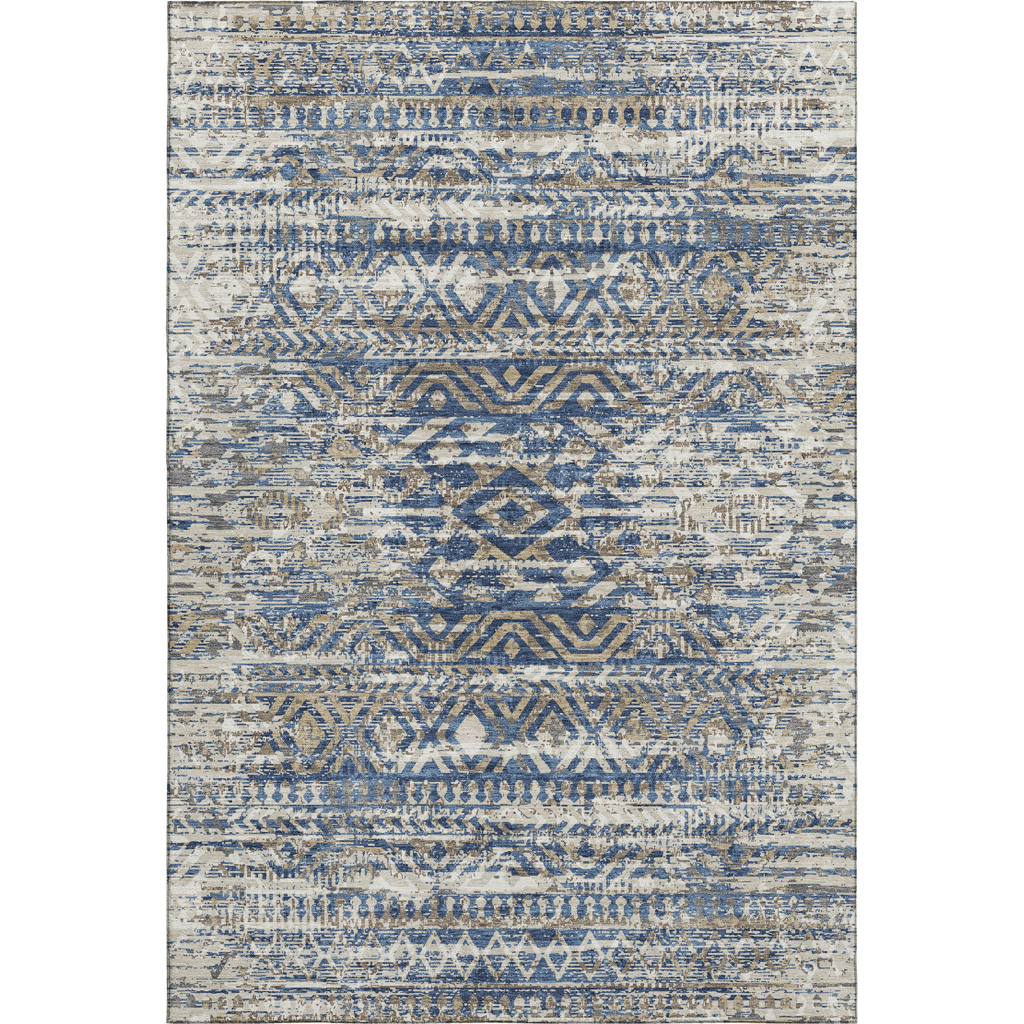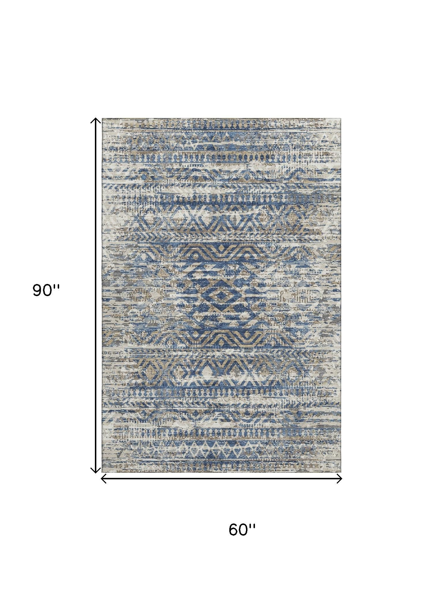 This 5-foot x 8-foot blue gray and beige moroccan washable area rug with uv protection, is a great way to add warmth to a room. Ideal for spaces with kids and pets, this rug is stain resistant to help repel dirt and spilled liquids. Built to last, this rug crafted from polyester fibers is known for its durability and long lasting appeal. Rugs are a great way to showcase your style, hide imperfections, warm your home and reduce noise. This larger sized, transitional styled rug is ready to create a focal point or statement piece in your room. 60.00-inch h x 90.00-inch w x 0.39-inch d.