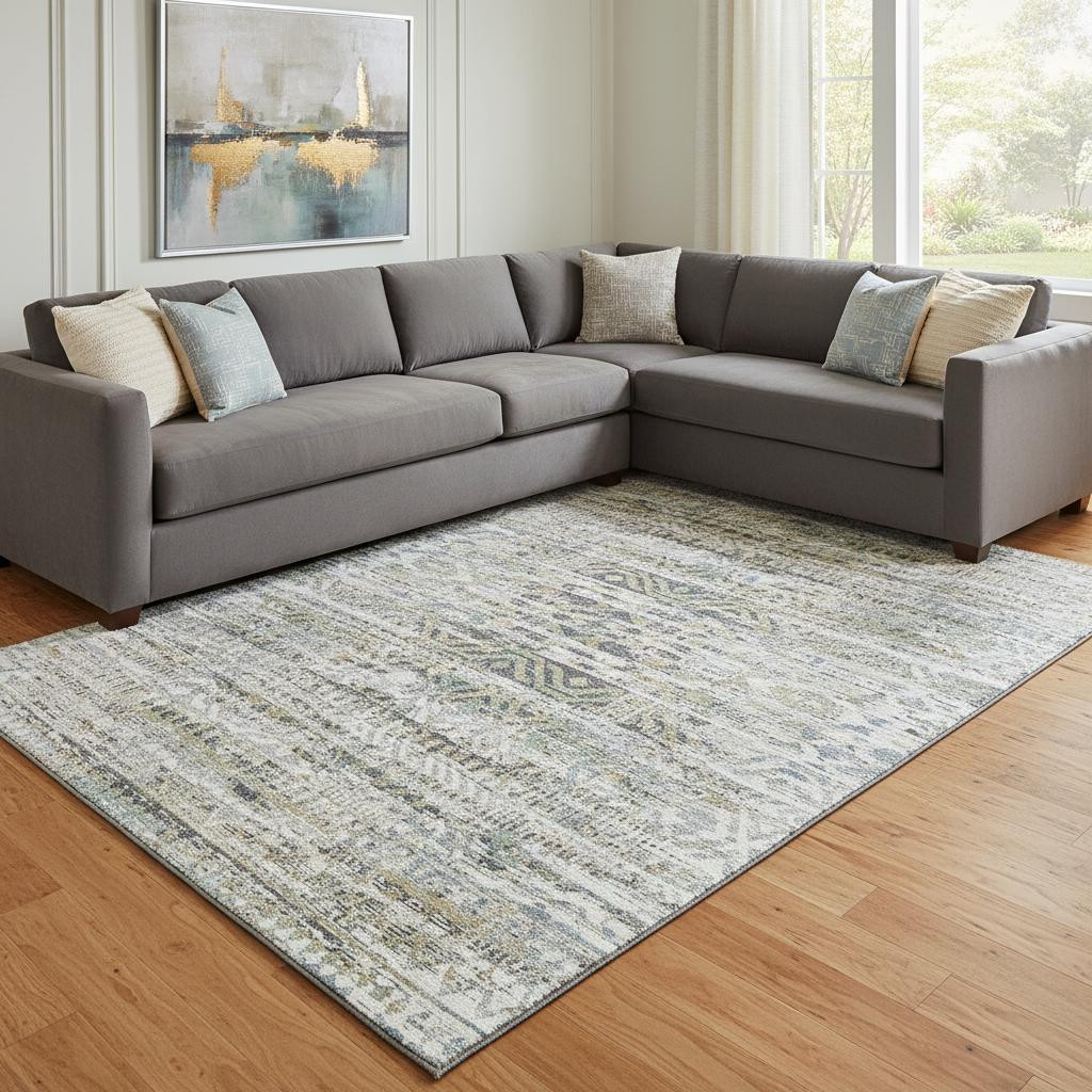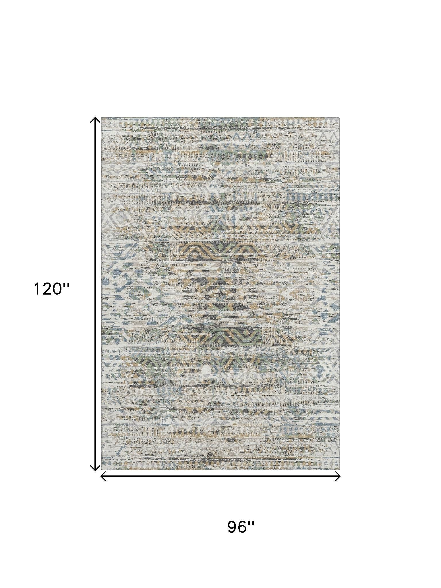 This 8-foot x 10-foot ivory beige and charcoal moroccan washable area rug with uv protection, is a great way to add warmth to a room. Ideal for spaces with kids and pets, this rug is stain resistant to help repel dirt and spilled liquids. Built to last, this rug crafted from polyester fibers is known for its durability and long lasting appeal. Rugs are a great way to showcase your style, hide imperfections, warm your home and reduce noise. This larger sized, transitional styled rug is ready to create a focal point or statement piece in your room. 96.00-inch h x 120.00-inch w x 0.39-inch d.