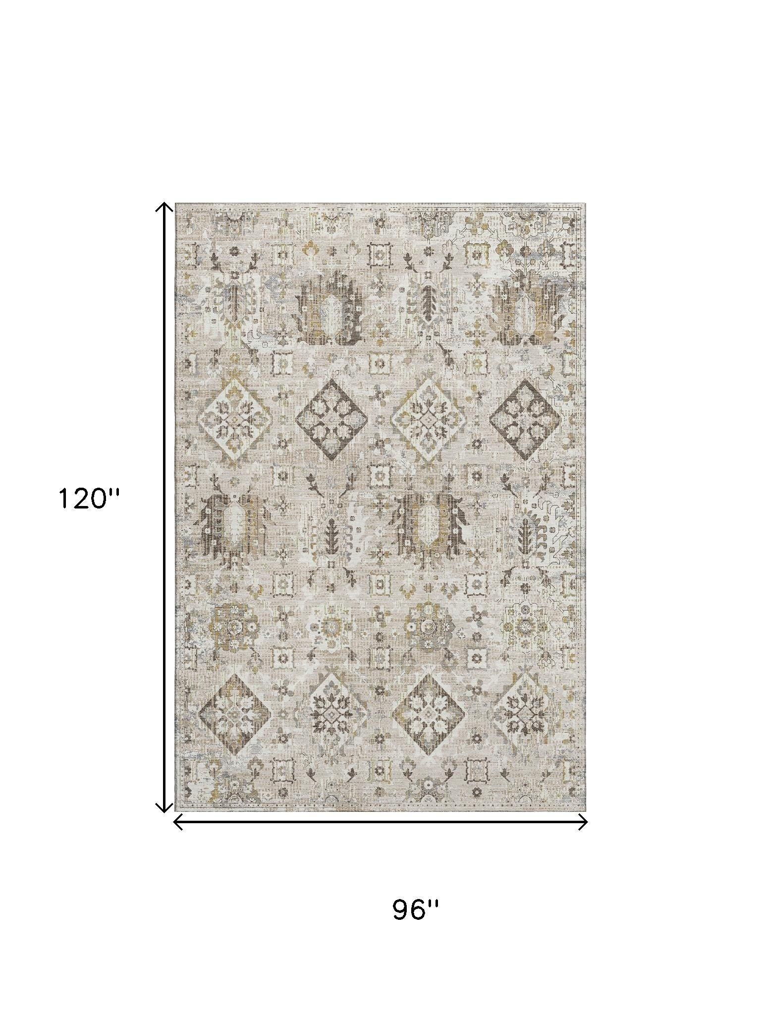 Add great coloration and comfortable texture to your space with this 8-foot x 10-foot linen and ivory oriental washable area rug with uv protection. Ideal for spaces with kids and pets, this rug is stain resistant to help repel dirt and spilled liquids. Built to last, this rug crafted from polyester fibers is known for its durability and long lasting appeal. Rugs are a great way to showcase your style, hide imperfections, warm your home and reduce noise. This larger sized, traditional styled rug is ready to create a focal point or statement piece in your room. 96.00-inch h x 120.00-inch w x 0.39-inch d.