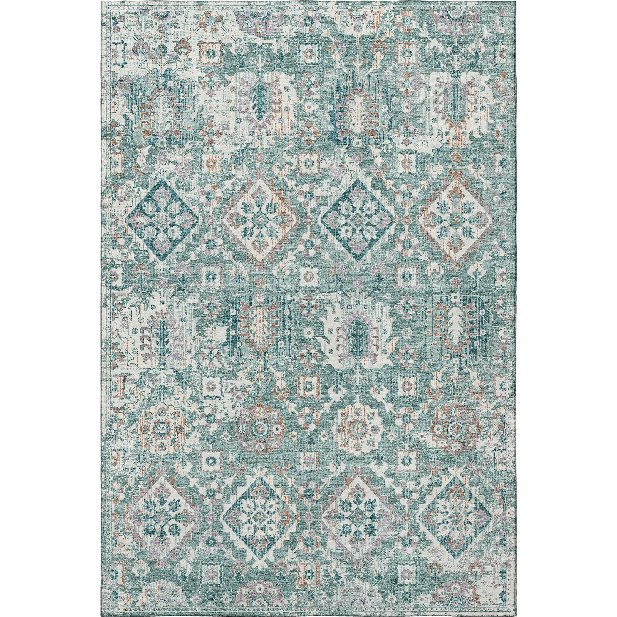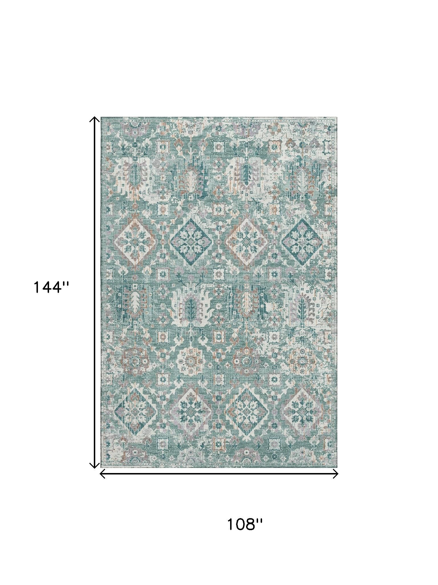 Set an inviting tone in your space with this 9-foot x 12-foot pale aqua and ivory oriental washable area rug with uv protection. Ideal for spaces with kids and pets, this rug is stain resistant to help repel dirt and spilled liquids. Built to last, this rug crafted from polyester fibers is known for its durability and long lasting appeal. Rugs are a great way to showcase your style, hide imperfections, warm your home and reduce noise. This larger sized, traditional styled rug is ready to create a focal point or statement piece in your room. 108.00-inch h x 144.00-inch w x 0.39-inch d.