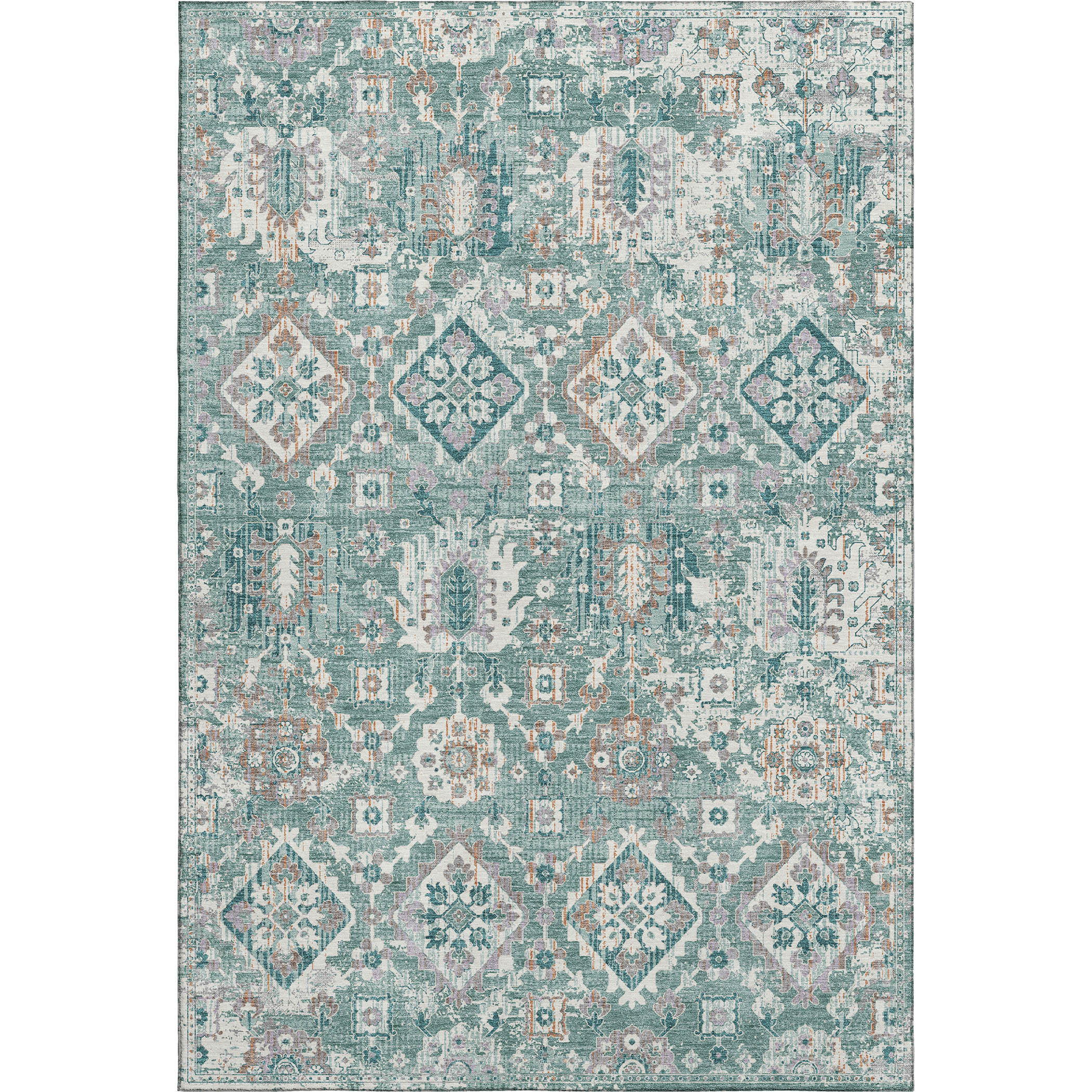 Set an inviting tone in your space with this 10-foot x 14-foot pale aqua and ivory oriental washable area rug with uv protection. Ideal for spaces with kids and pets, this rug is stain resistant to help repel dirt and spilled liquids. Built to last, this rug crafted from polyester fibers is known for its durability and long lasting appeal. Rugs are a great way to showcase your style, hide imperfections, warm your home and reduce noise. This larger sized, traditional styled rug is ready to create a focal point or statement piece in your room. 120.00-inch h x 168.00-inch w x 0.39-inch d.