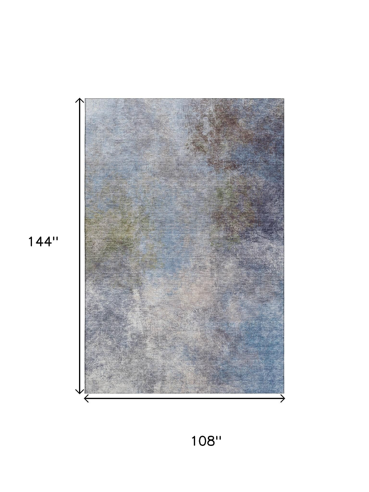 Add some artistry to your room with this 9-foot x 12-foot denim blue and brown abstract washable area rug with uv protection. Ideal for spaces with kids and pets, this rug is stain resistant to help repel dirt and spilled liquids. Built to last, this rug crafted from polyester fibers is known for its durability and long lasting appeal. Rugs are a great way to showcase your style, hide imperfections, warm your home and reduce noise. This larger sized, transitional styled rug is ready to create a focal point or statement piece in your room. 108.00-inch h x 144.00-inch w x 0.39-inch d.