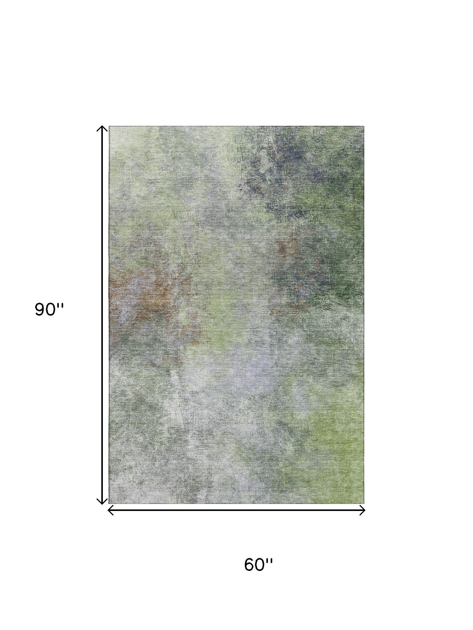 Add great coloration and comfortable texture to your space with this 5-foot x 8-foot fern green and gray abstract washable area rug with uv protection. Ideal for spaces with kids and pets, this rug is stain resistant to help repel dirt and spilled liquids. Built to last, this rug crafted from polyester fibers is known for its durability and long lasting appeal. Rugs are a great way to showcase your style, hide imperfections, warm your home and reduce noise. This larger sized, transitional styled rug is ready to create a focal point or statement piece in your room. 60.00-inch h x 90.00-inch w x 0.39-inch d.