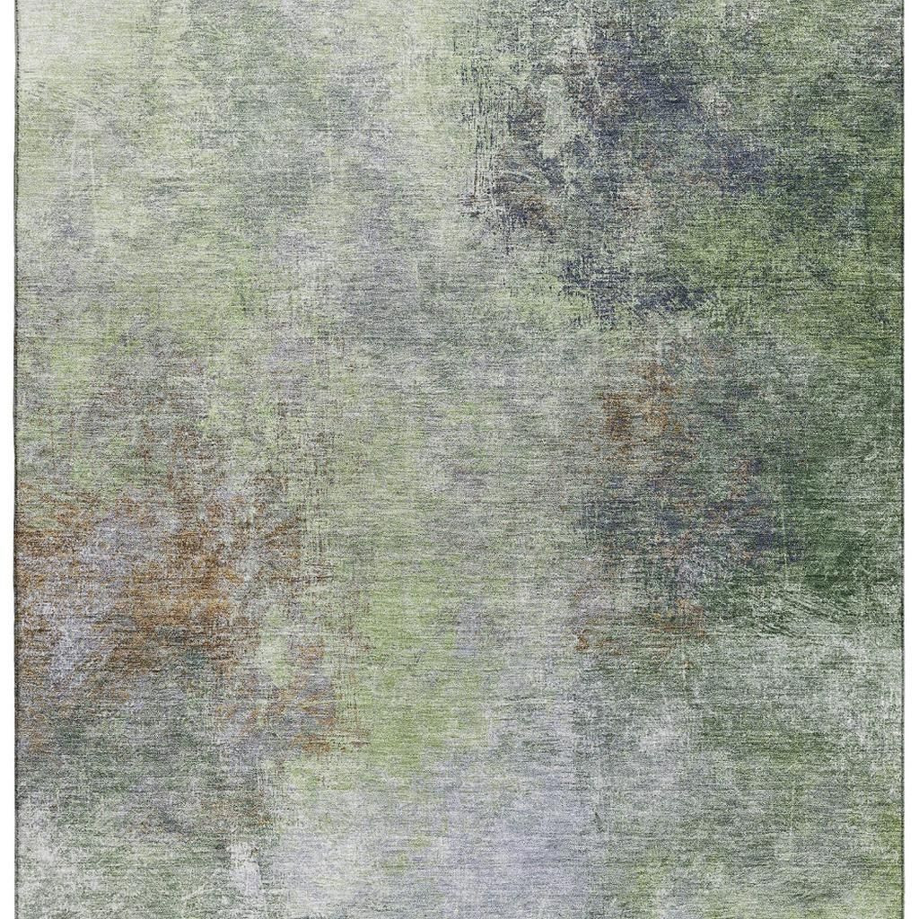 This 8-foot x 10-foot fern green and gray abstract washable area rug with uv protection, is a great way to add warmth to a room. Ideal for spaces with kids and pets, this rug is stain resistant to help repel dirt and spilled liquids. Built to last, this rug crafted from polyester fibers is known for its durability and long lasting appeal. Rugs are a great way to showcase your style, hide imperfections, warm your home and reduce noise. This larger sized, transitional styled rug is ready to create a focal point or statement piece in your room. 96.00-inch h x 120.00-inch w x 0.39-inch d.
