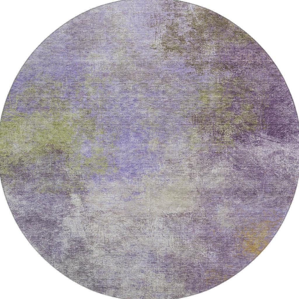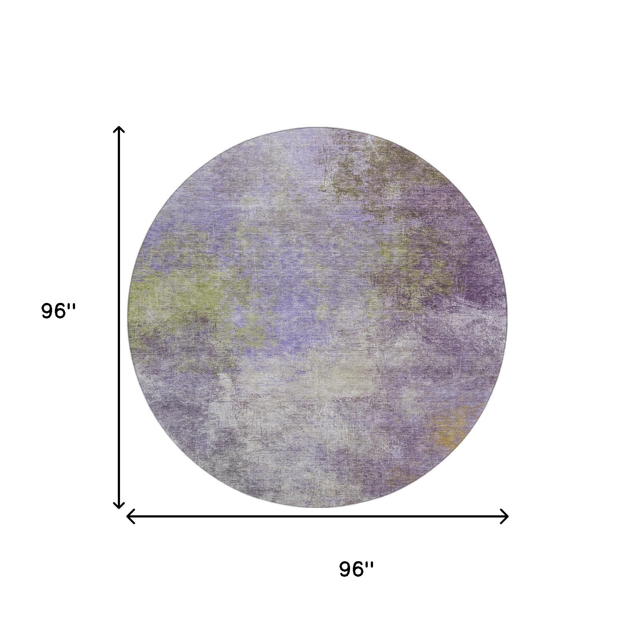 Set an inviting tone in your space with this 8-foot purple and green abstract washable round rug with uv protection. Ideal for spaces with kids and pets, this rug is stain resistant to help repel dirt and spilled liquids. Built to last, this rug crafted from polyester fibers is known for its durability and long lasting appeal. Rugs are a great way to showcase your style, hide imperfections, warm your home and reduce noise. This larger sized, transitional styled rug is ready to create a focal point or statement piece in your room. 96.00-inch h x 96.00-inch w x 0.39-inch d.