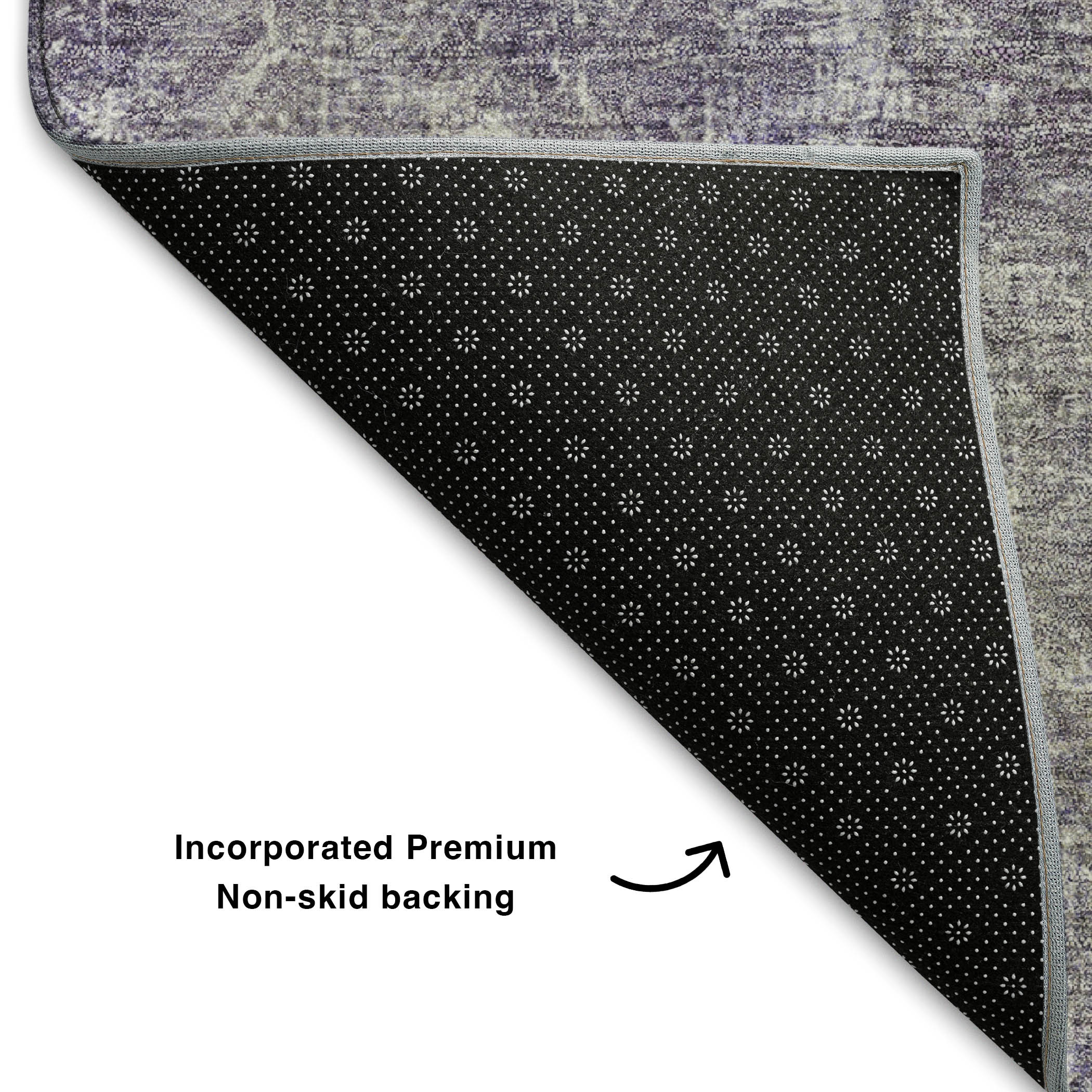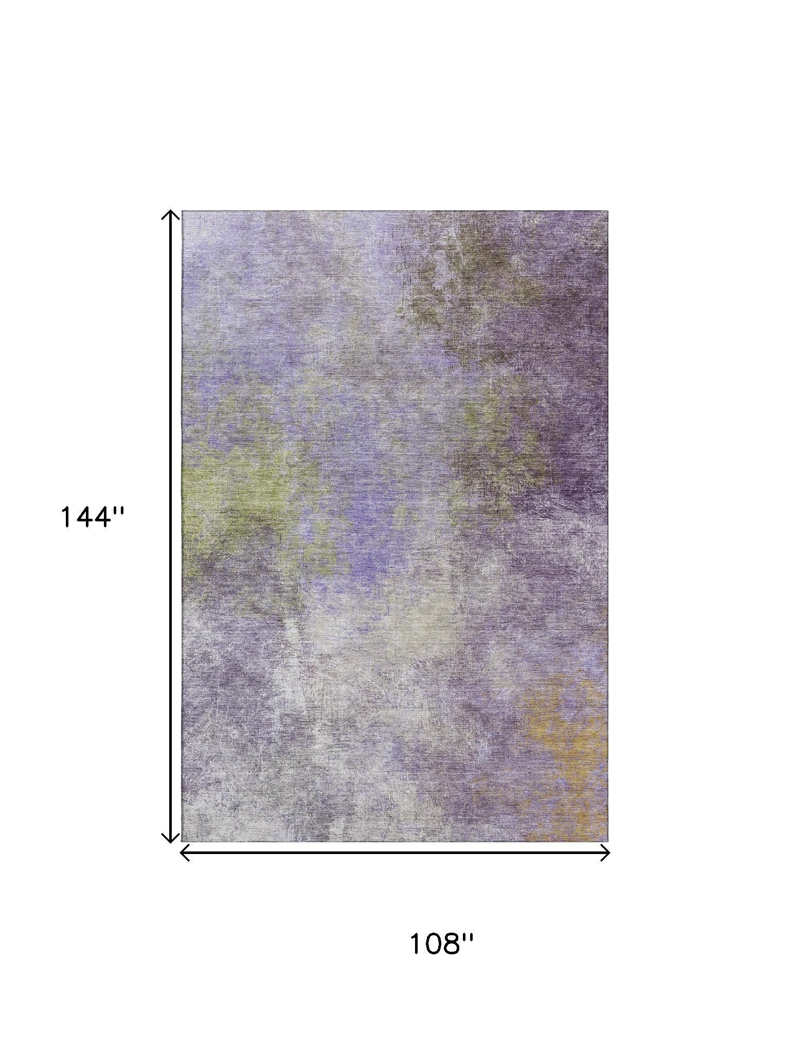 Add some artistry to your room with this 9-foot x 12-foot purple and green abstract washable area rug with uv protection. Ideal for spaces with kids and pets, this rug is stain resistant to help repel dirt and spilled liquids. Built to last, this rug crafted from polyester fibers is known for its durability and long lasting appeal. Rugs are a great way to showcase your style, hide imperfections, warm your home and reduce noise. This larger sized, transitional styled rug is ready to create a focal point or statement piece in your room. 108.00-inch h x 144.00-inch w x 0.39-inch d.
