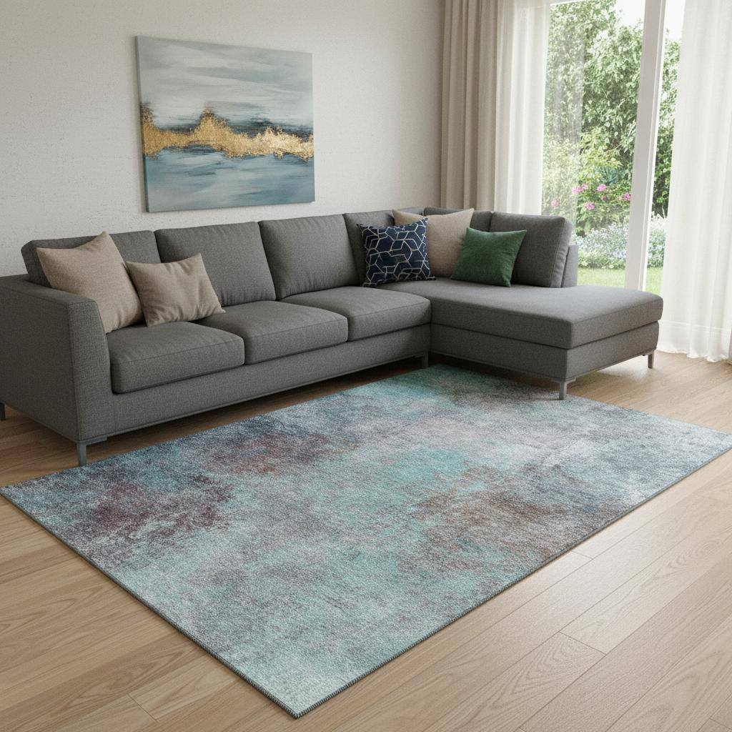Add great coloration and comfortable texture to your space with this 8-foot x 10-foot teal and taupe abstract washable area rug with uv protection. Ideal for spaces with kids and pets, this rug is stain resistant to help repel dirt and spilled liquids. Built to last, this rug crafted from polyester fibers is known for its durability and long lasting appeal. Rugs are a great way to showcase your style, hide imperfections, warm your home and reduce noise. This larger sized, transitional styled rug is ready to create a focal point or statement piece in your room. 96.00-inch h x 120.00-inch w x 0.39-inch d.