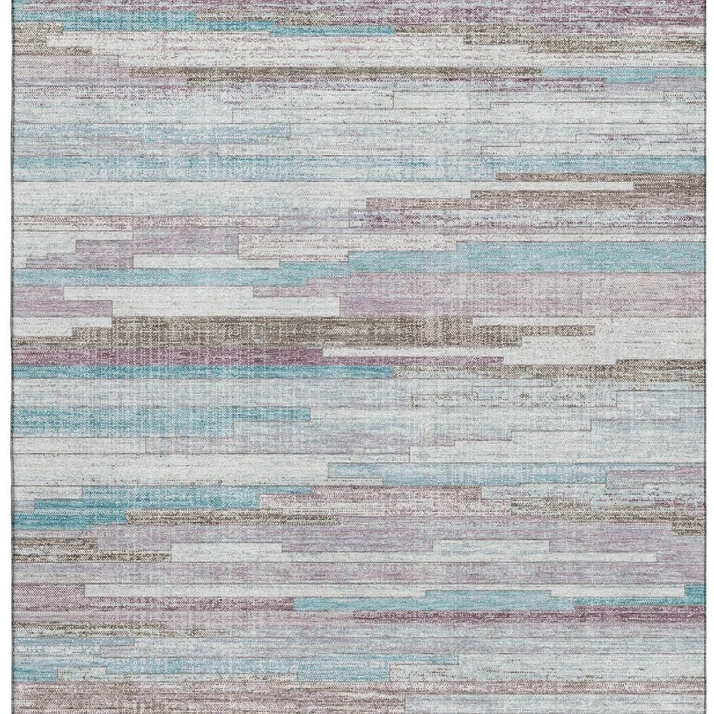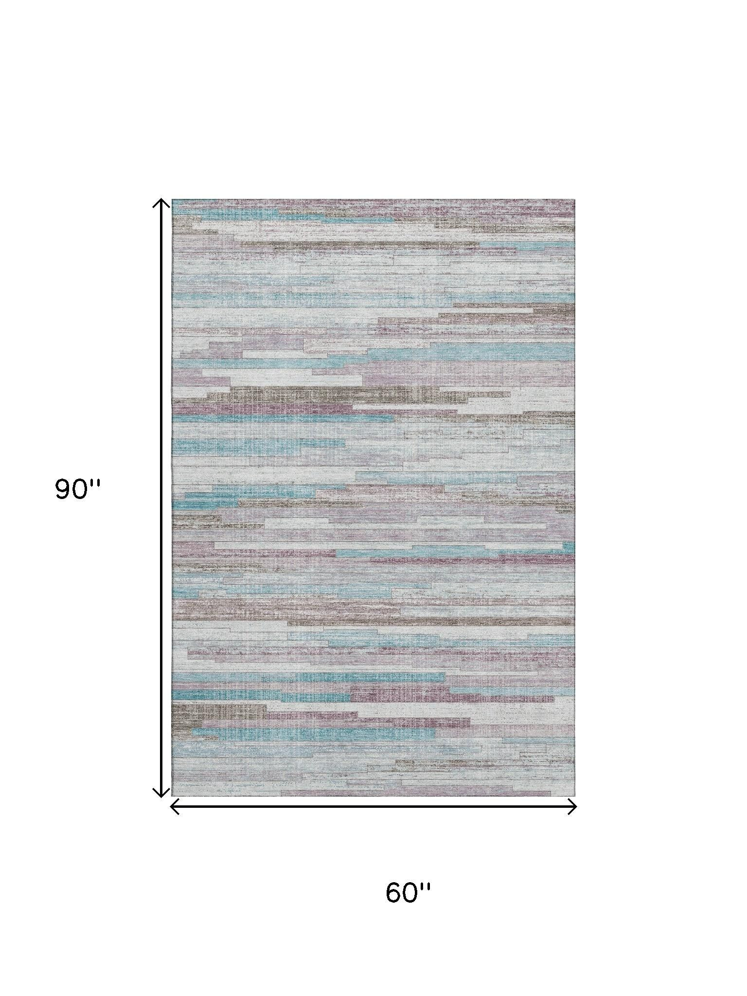 This 5-foot x 8-foot teal beige and ivory striped washable area rug with uv protection, is a great way to add warmth to a room. Ideal for spaces with kids and pets, this rug is stain resistant to help repel dirt and spilled liquids. Built to last, this rug crafted from polyester fibers is known for its durability and long lasting appeal. Rugs are a great way to showcase your style, hide imperfections, warm your home and reduce noise. This larger sized, transitional styled rug is ready to create a focal point or statement piece in your room. 60.00-inch h x 90.00-inch w x 0.39-inch d.