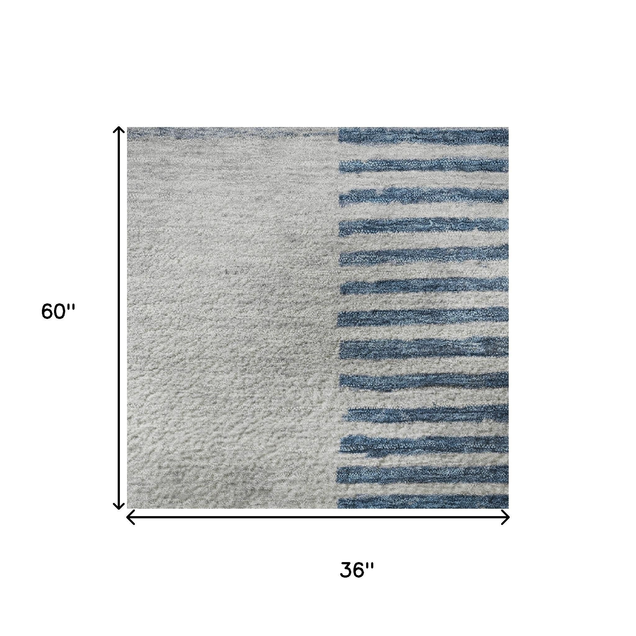 Add great coloration and comfortable texture to your space with this 3-foot x 5-foot denim blue ivory and gray geometric washable area rug with uv protection. Ideal for spaces with kids and pets, this rug is stain resistant to help repel dirt and spilled liquids. Built to last, this rug crafted from polyester fibers is known for its durability and long lasting appeal. Rugs are a great way to showcase your style, hide imperfections, warm your home and reduce noise. This smaller sized, transitional styled rug is just what you need for your walkway, bedside, in front of door, cabinet, refrigerator, or chair. 36.00-inch h x 60.00-inch w x 0.39-inch d.