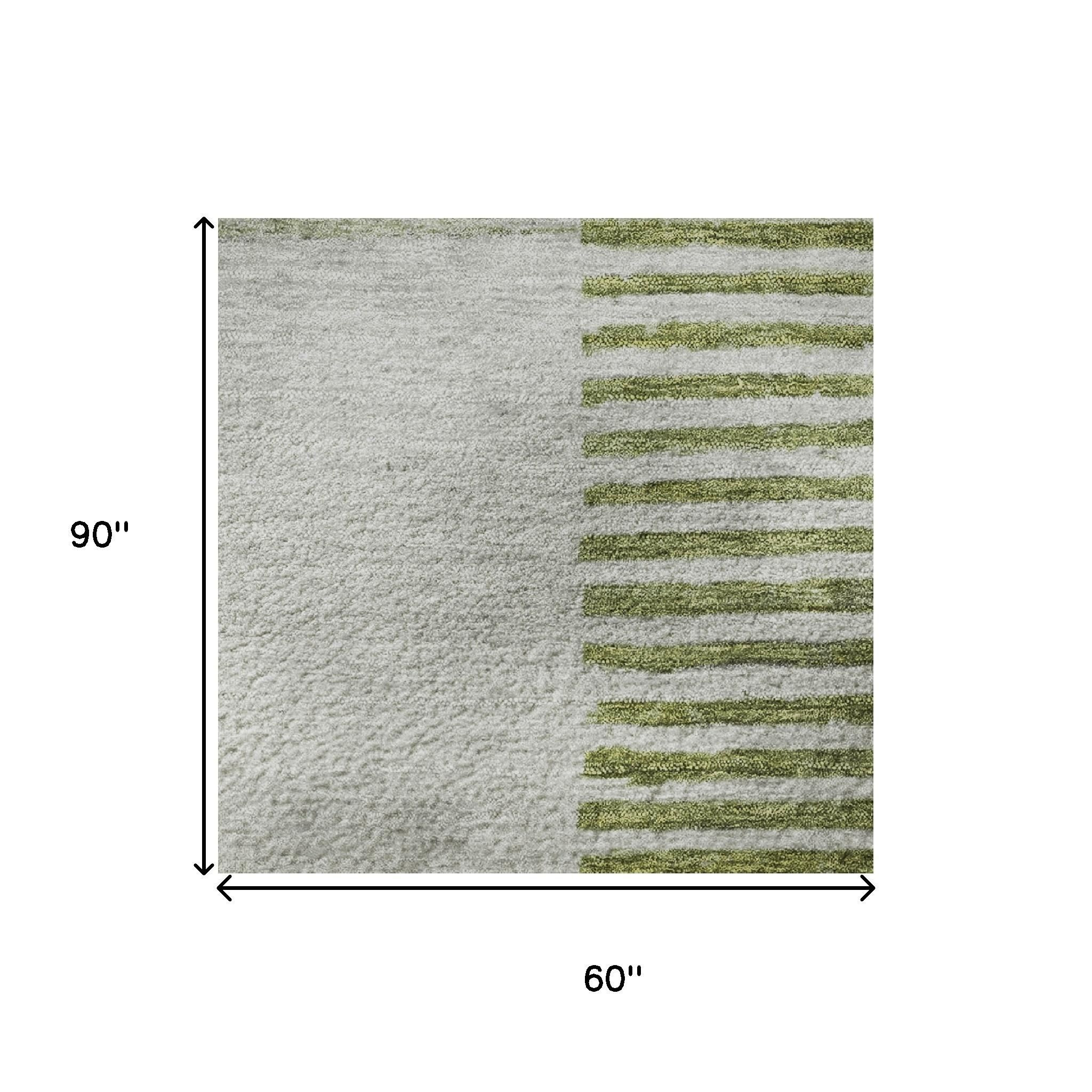 Add great coloration and comfortable texture to your space with this 5-foot x 8-foot olive green gray and ivory geometric washable area rug with uv protection. Ideal for spaces with kids and pets, this rug is stain resistant to help repel dirt and spilled liquids. Built to last, this rug crafted from polyester fibers is known for its durability and long lasting appeal. Rugs are a great way to showcase your style, hide imperfections, warm your home and reduce noise. This larger sized, transitional styled rug is ready to create a focal point or statement piece in your room. 60.00-inch h x 90.00-inch w x 0.39-inch d.