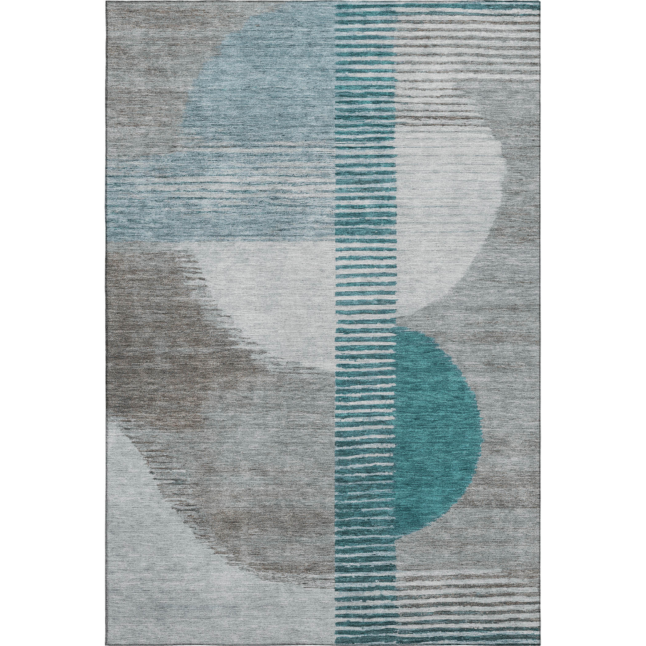 This 9-foot x 12-foot teal ivory and gray geometric washable area rug with uv protection, is a great way to add warmth to a room. Ideal for spaces with kids and pets, this rug is stain resistant to help repel dirt and spilled liquids. Built to last, this rug crafted from polyester fibers is known for its durability and long lasting appeal. Rugs are a great way to showcase your style, hide imperfections, warm your home and reduce noise. This larger sized, transitional styled rug is ready to create a focal point or statement piece in your room. 108.00-inch h x 144.00-inch w x 0.39-inch d.