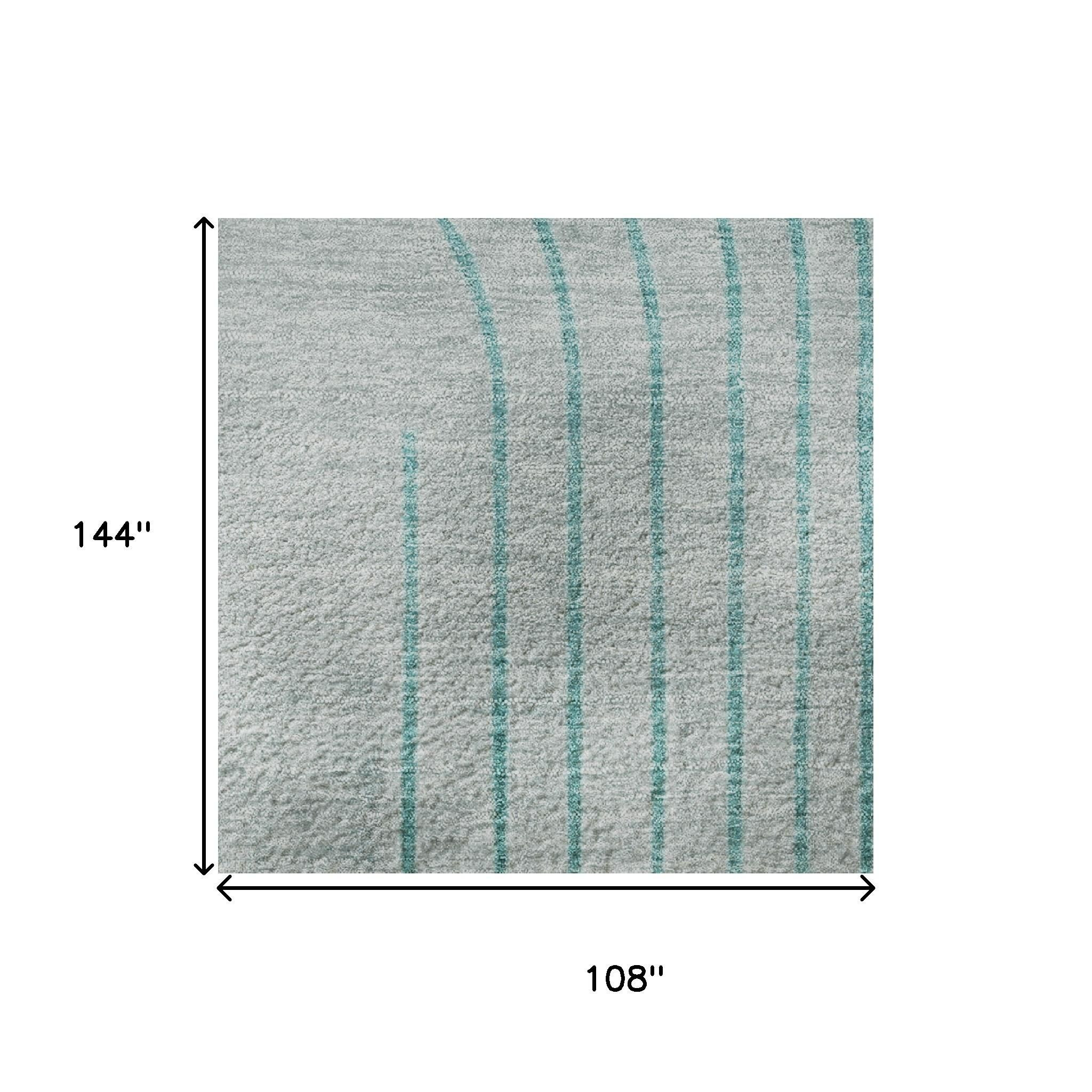 Add some artistry to your room with this 9-foot x 12-foot teal and beige geometric washable area rug with uv protection. Ideal for spaces with kids and pets, this rug is stain resistant to help repel dirt and spilled liquids. Built to last, this rug crafted from polyester fibers is known for its durability and long lasting appeal. Rugs are a great way to showcase your style, hide imperfections, warm your home and reduce noise. This larger sized, transitional styled rug is ready to create a focal point or statement piece in your room. 108.00-inch h x 144.00-inch w x 0.39-inch d.