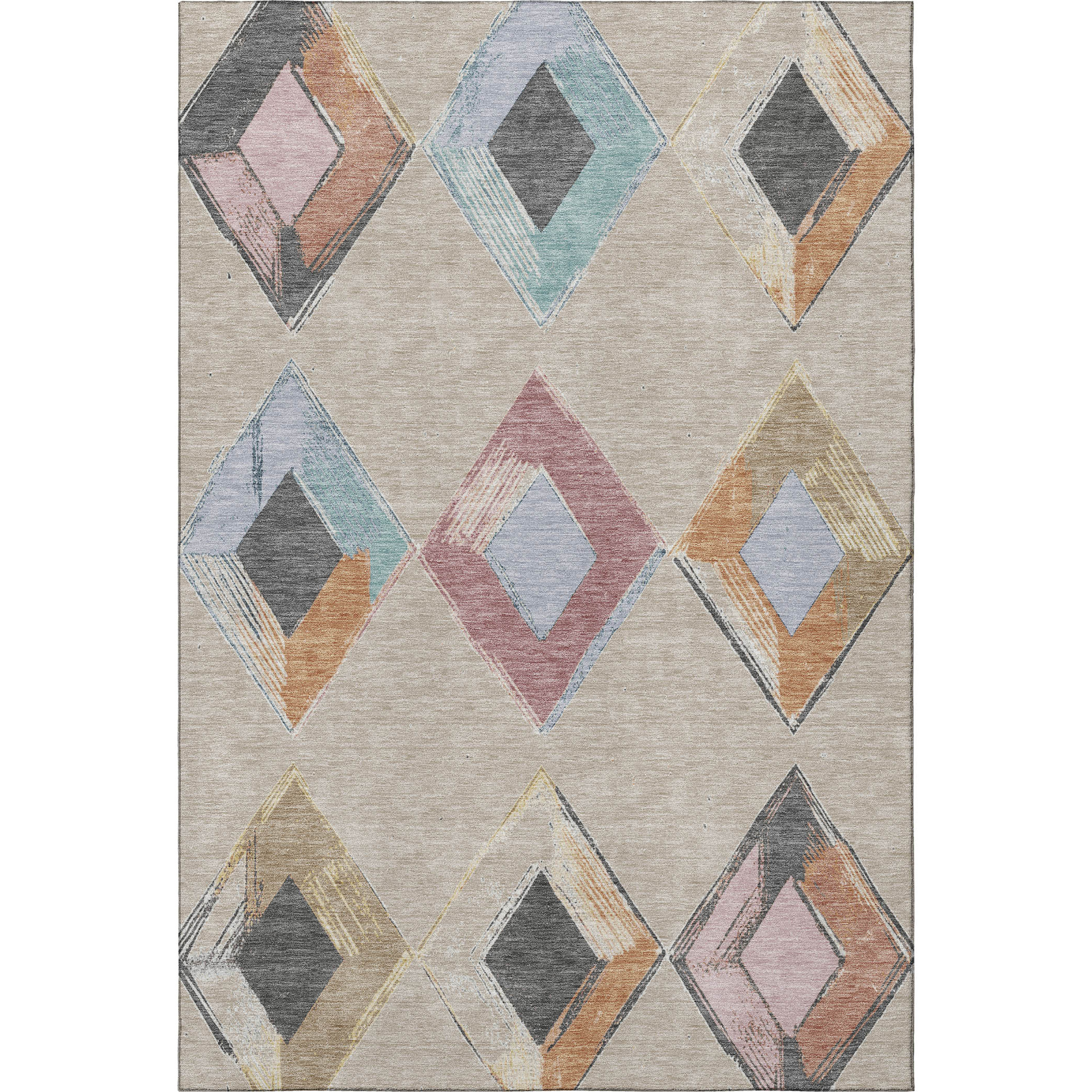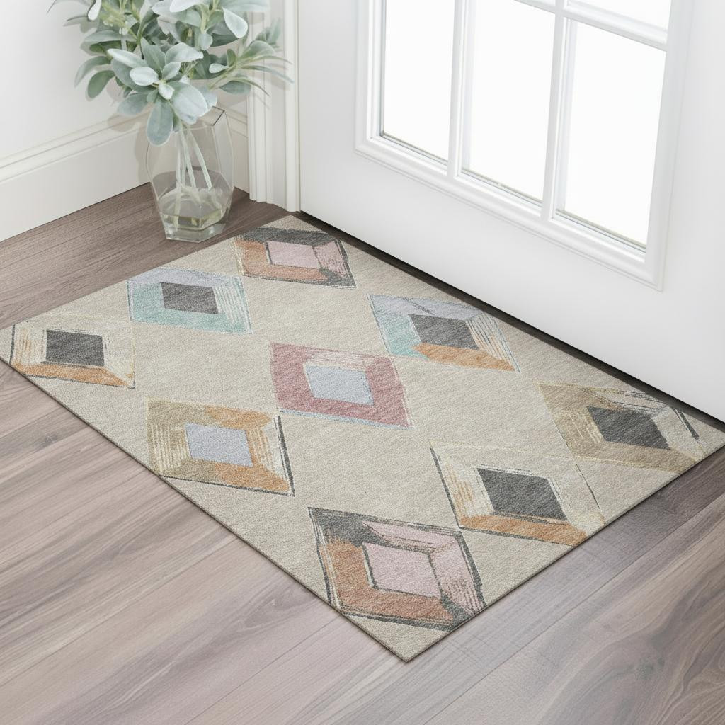 Set an inviting tone in your space with this 3-foot x 5-foot beige blue and copper geometric washable area rug with uv protection. Ideal for spaces with kids and pets, this rug is stain resistant to help repel dirt and spilled liquids. Built to last, this rug crafted from polyester fibers is known for its durability and long lasting appeal. Rugs are a great way to showcase your style, hide imperfections, warm your home and reduce noise. This smaller sized, transitional styled rug is just what you need for your walkway, bedside, in front of door, cabinet, refrigerator, or chair. 36.00-inch h x 60.00-inch w x 0.39-inch d.
