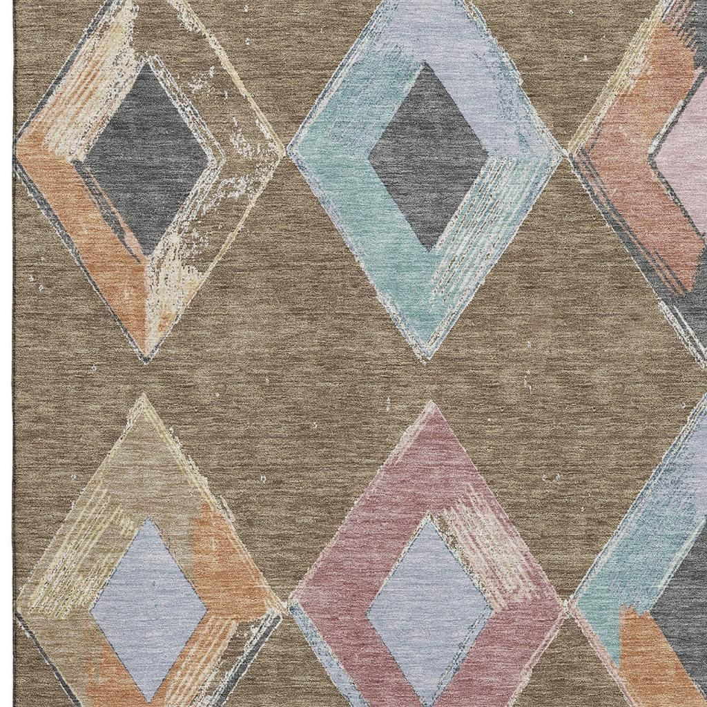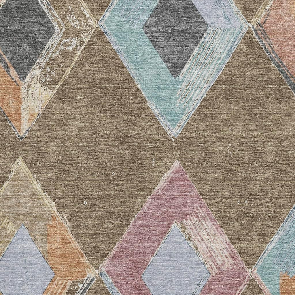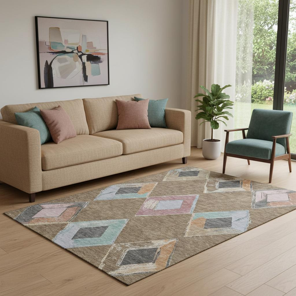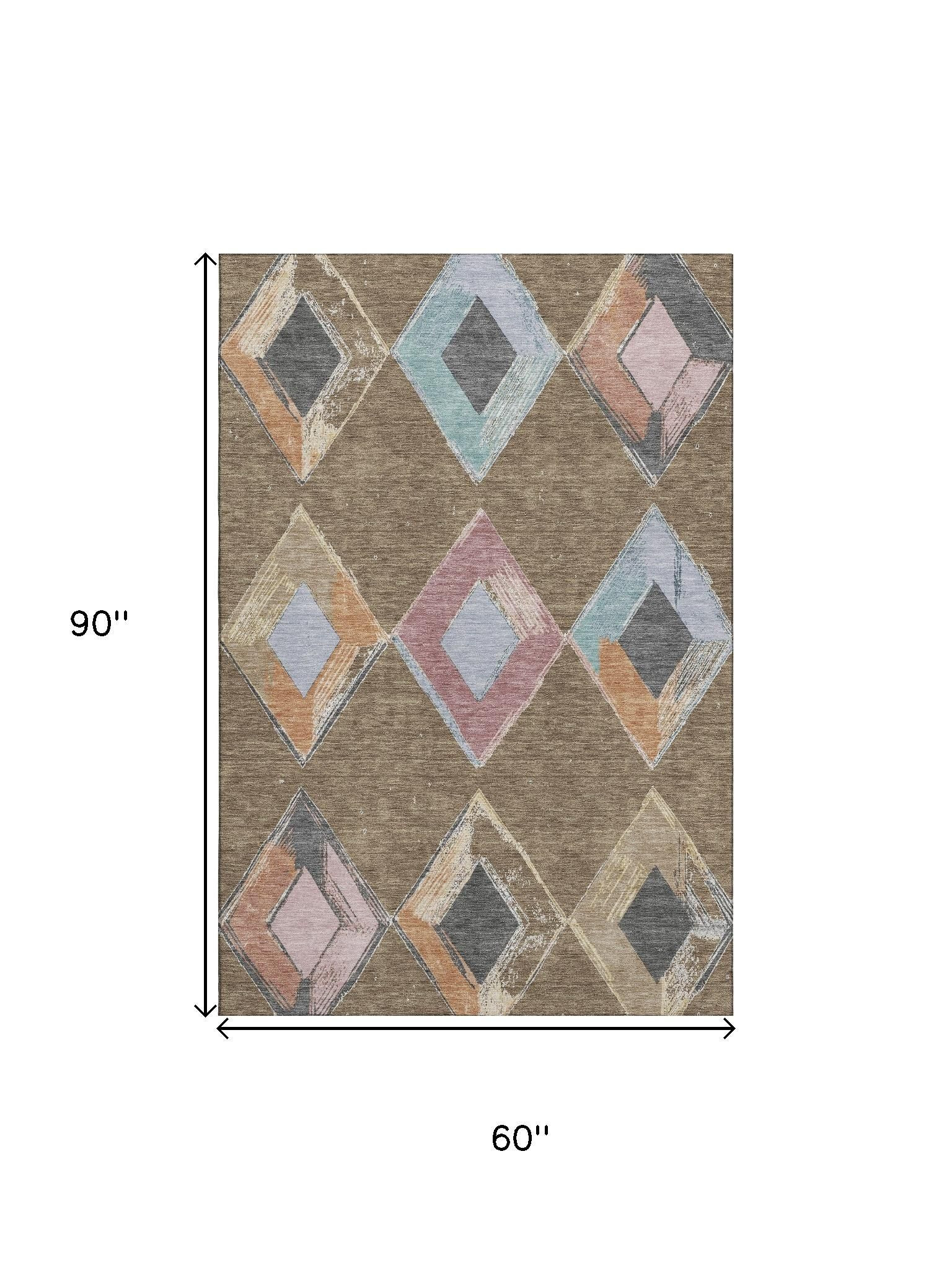 This 5-foot x 8-foot brown blue and beige geometric washable area rug with uv protection, is a great way to add warmth to a room. Ideal for spaces with kids and pets, this rug is stain resistant to help repel dirt and spilled liquids. Built to last, this rug crafted from polyester fibers is known for its durability and long lasting appeal. Rugs are a great way to showcase your style, hide imperfections, warm your home and reduce noise. This larger sized, transitional styled rug is ready to create a focal point or statement piece in your room. 60.00-inch h x 90.00-inch w x 0.39-inch d.