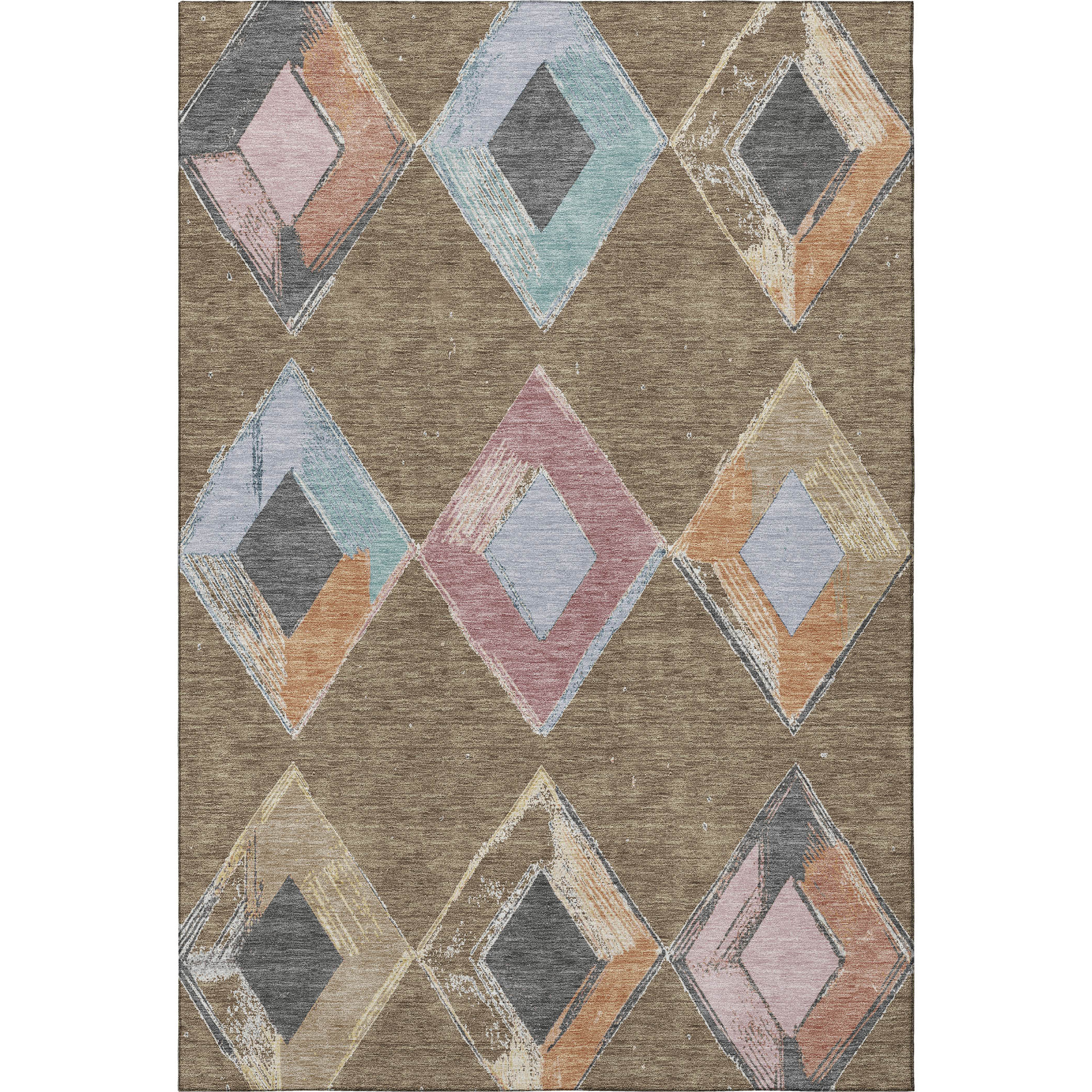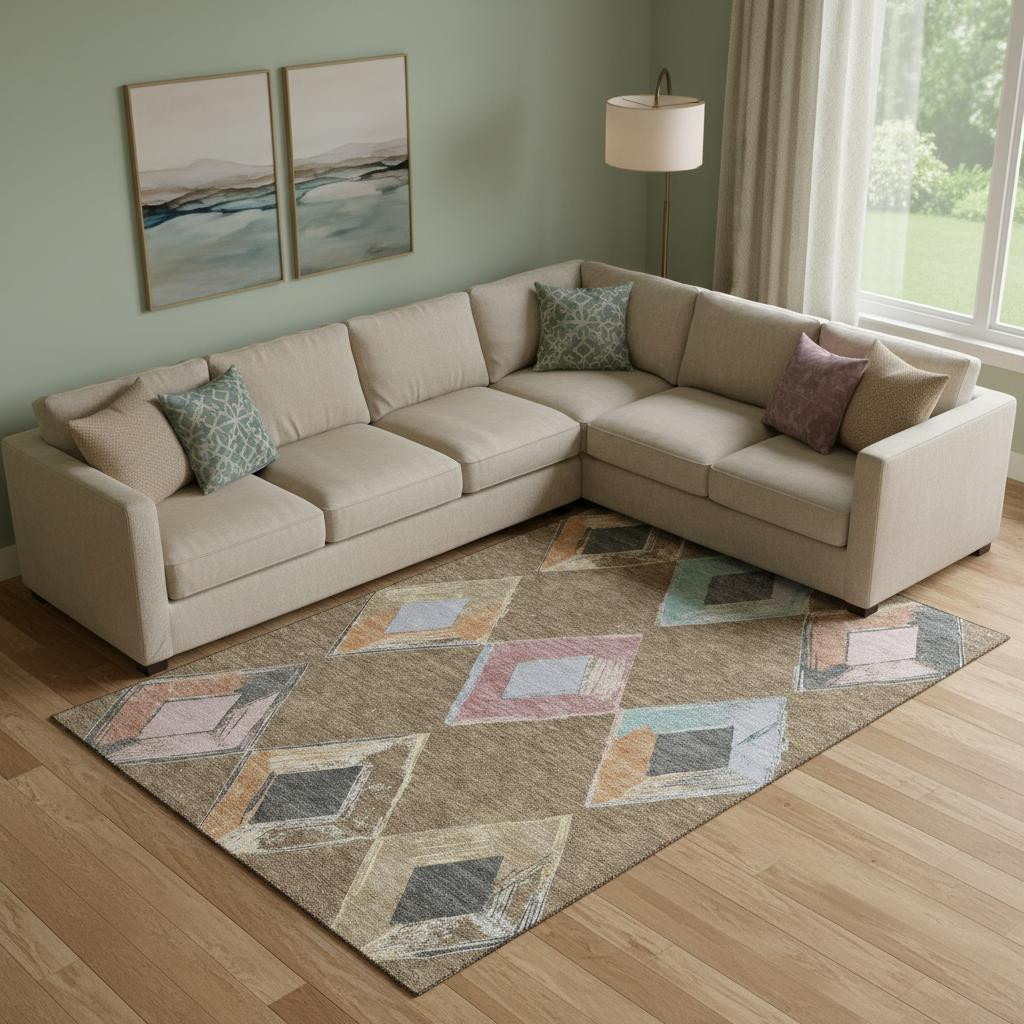 Set an inviting tone in your space with this 10-foot x 14-foot brown blue and beige geometric washable area rug with uv protection. Ideal for spaces with kids and pets, this rug is stain resistant to help repel dirt and spilled liquids. Built to last, this rug crafted from polyester fibers is known for its durability and long lasting appeal. Rugs are a great way to showcase your style, hide imperfections, warm your home and reduce noise. This larger sized, transitional styled rug is ready to create a focal point or statement piece in your room. 120.00-inch h x 168.00-inch w x 0.39-inch d.