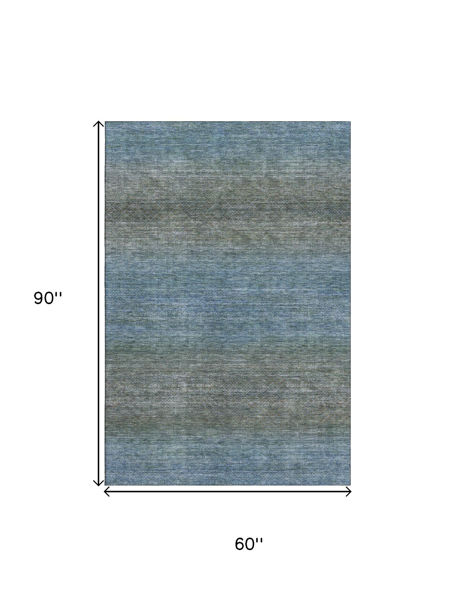 Add some artistry to your room with this 5-foot x 8-foot blue and taupe geometric washable area rug with uv protection. Ideal for spaces with kids and pets, this rug is stain resistant to help repel dirt and spilled liquids. Built to last, this rug crafted from polyester fibers is known for its durability and long lasting appeal. Rugs are a great way to showcase your style, hide imperfections, warm your home and reduce noise. This larger sized, transitional styled rug is ready to create a focal point or statement piece in your room. 60.00-inch h x 90.00-inch w x 0.39-inch d.