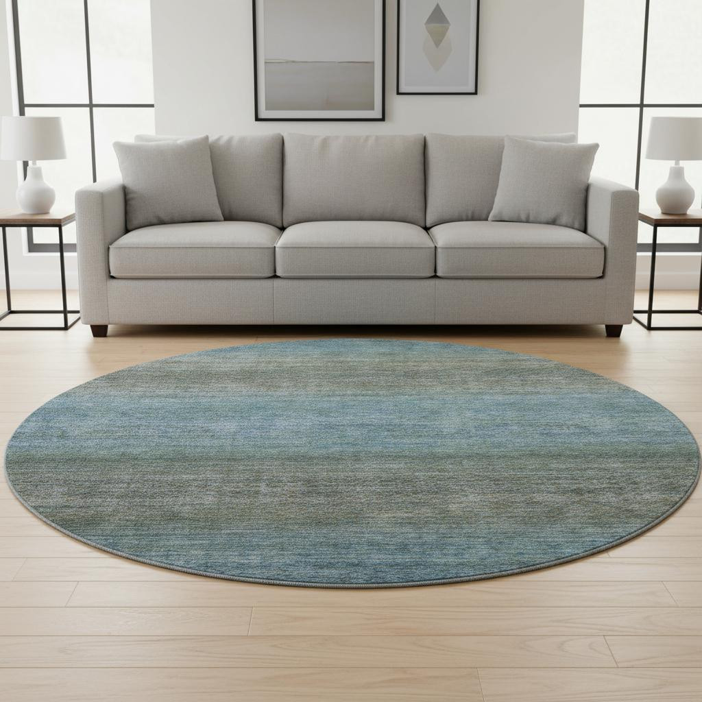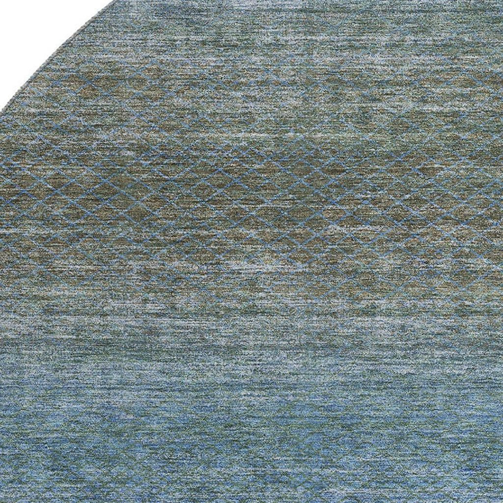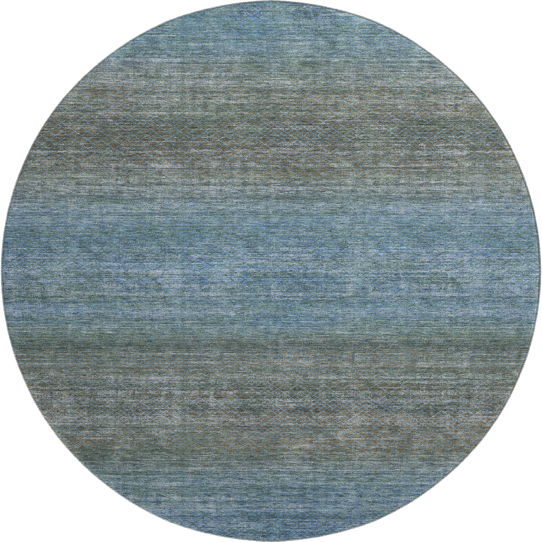 Set an inviting tone in your space with this 8-foot blue and taupe geometric washable round rug with uv protection. Ideal for spaces with kids and pets, this rug is stain resistant to help repel dirt and spilled liquids. Built to last, this rug crafted from polyester fibers is known for its durability and long lasting appeal. Rugs are a great way to showcase your style, hide imperfections, warm your home and reduce noise. This larger sized, transitional styled rug is ready to create a focal point or statement piece in your room. 96.00-inch h x 96.00-inch w x 0.39-inch d.