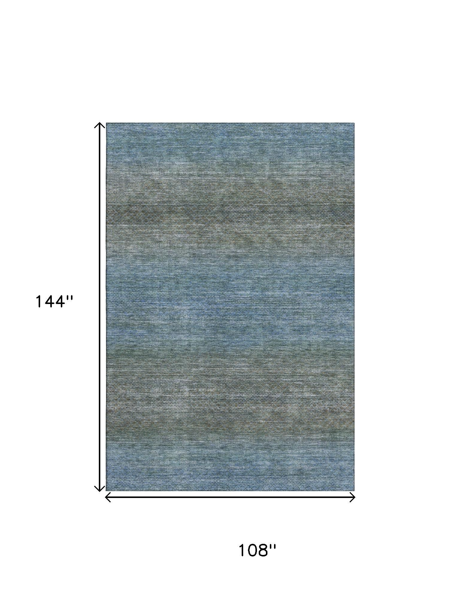 Add some artistry to your room with this 9-foot x 12-foot blue and taupe geometric washable area rug with uv protection. Ideal for spaces with kids and pets, this rug is stain resistant to help repel dirt and spilled liquids. Built to last, this rug crafted from polyester fibers is known for its durability and long lasting appeal. Rugs are a great way to showcase your style, hide imperfections, warm your home and reduce noise. This larger sized, transitional styled rug is ready to create a focal point or statement piece in your room. 108.00-inch h x 144.00-inch w x 0.39-inch d.