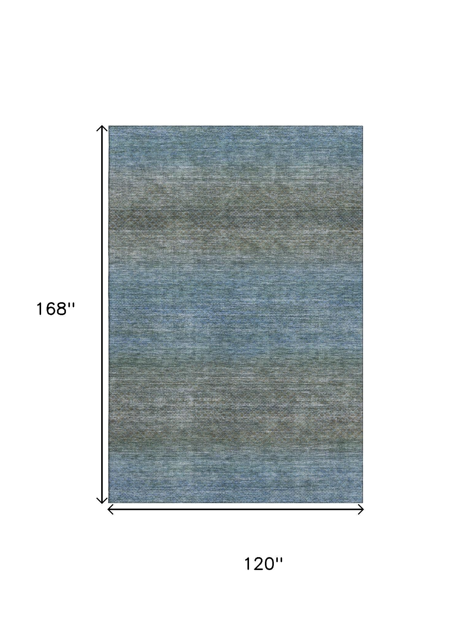 This 10-foot x 14-foot blue and taupe geometric washable area rug with uv protection, is a great way to add warmth to a room. Ideal for spaces with kids and pets, this rug is stain resistant to help repel dirt and spilled liquids. Built to last, this rug crafted from polyester fibers is known for its durability and long lasting appeal. Rugs are a great way to showcase your style, hide imperfections, warm your home and reduce noise. This larger sized, transitional styled rug is ready to create a focal point or statement piece in your room. 120.00-inch h x 168.00-inch w x 0.39-inch d.