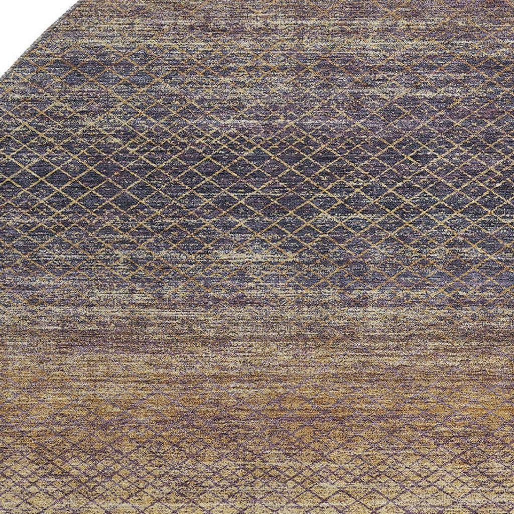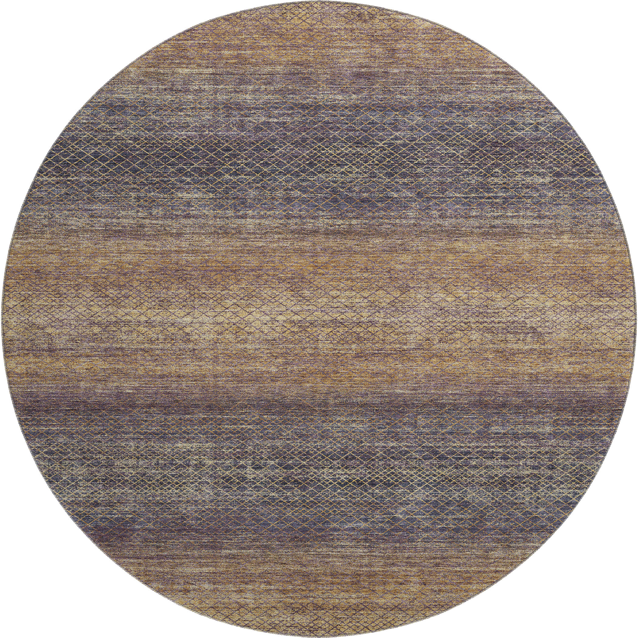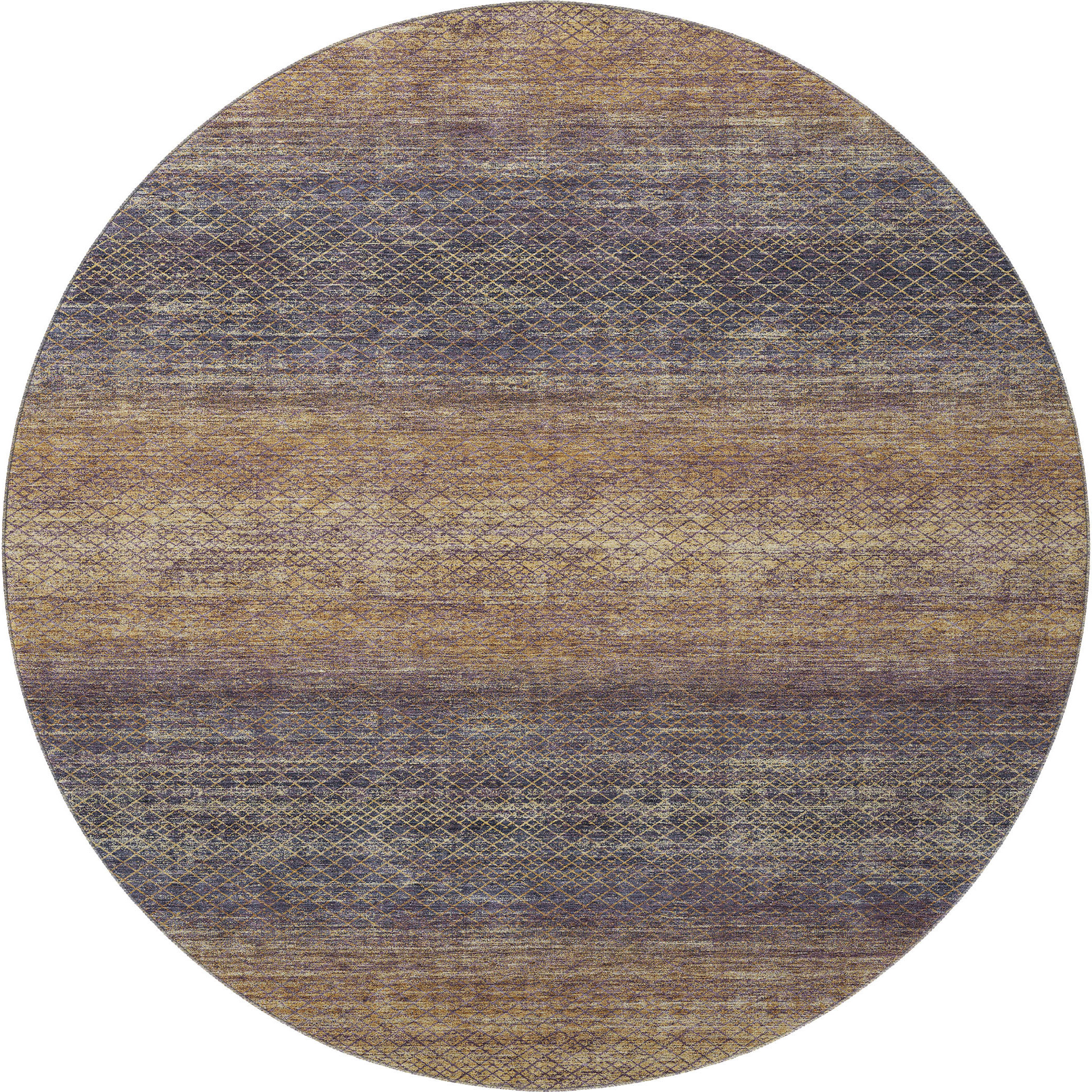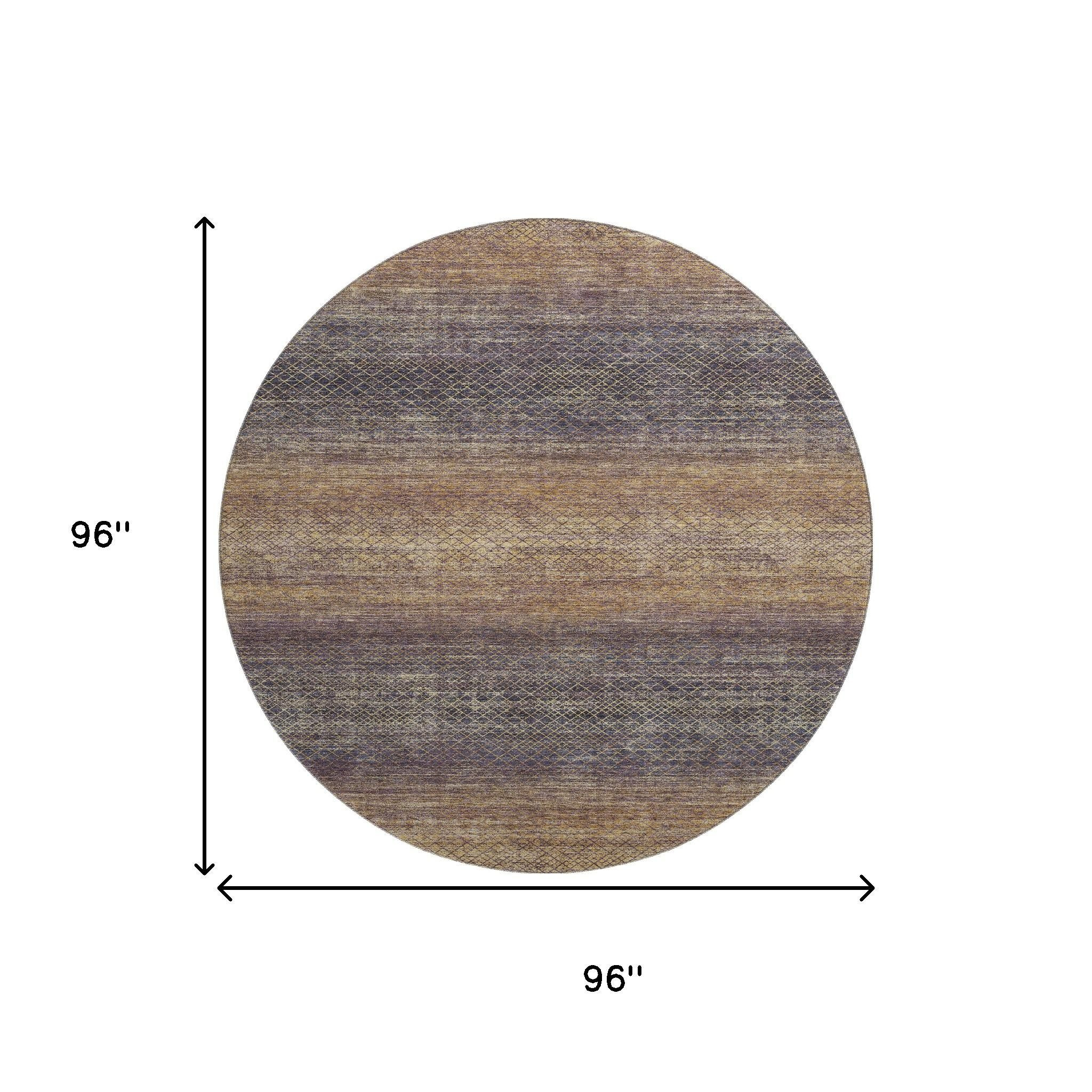 Set an inviting tone in your space with this 8-foot eggplant and brown geometric washable round rug with uv protection. Ideal for spaces with kids and pets, this rug is stain resistant to help repel dirt and spilled liquids. Built to last, this rug crafted from polyester fibers is known for its durability and long lasting appeal. Rugs are a great way to showcase your style, hide imperfections, warm your home and reduce noise. This larger sized, transitional styled rug is ready to create a focal point or statement piece in your room. 96.00-inch h x 96.00-inch w x 0.39-inch d.