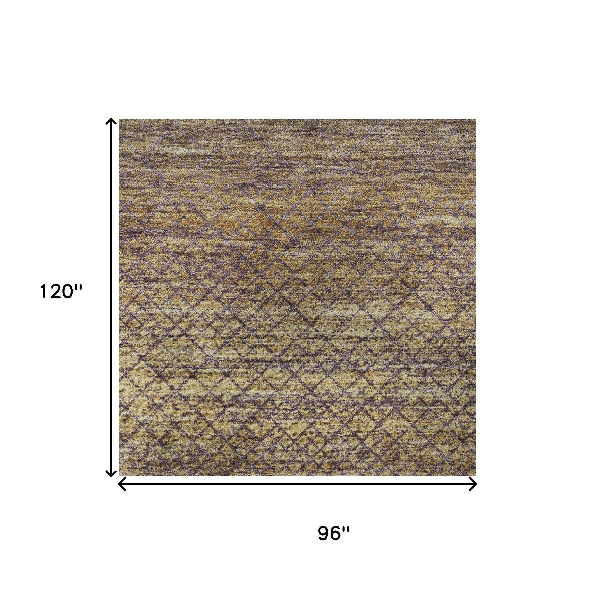Add great coloration and comfortable texture to your space with this 8-foot x 10-foot eggplant and brown geometric washable area rug with uv protection. Ideal for spaces with kids and pets, this rug is stain resistant to help repel dirt and spilled liquids. Built to last, this rug crafted from polyester fibers is known for its durability and long lasting appeal. Rugs are a great way to showcase your style, hide imperfections, warm your home and reduce noise. This larger sized, transitional styled rug is ready to create a focal point or statement piece in your room. 96.00-inch h x 120.00-inch w x 0.39-inch d.