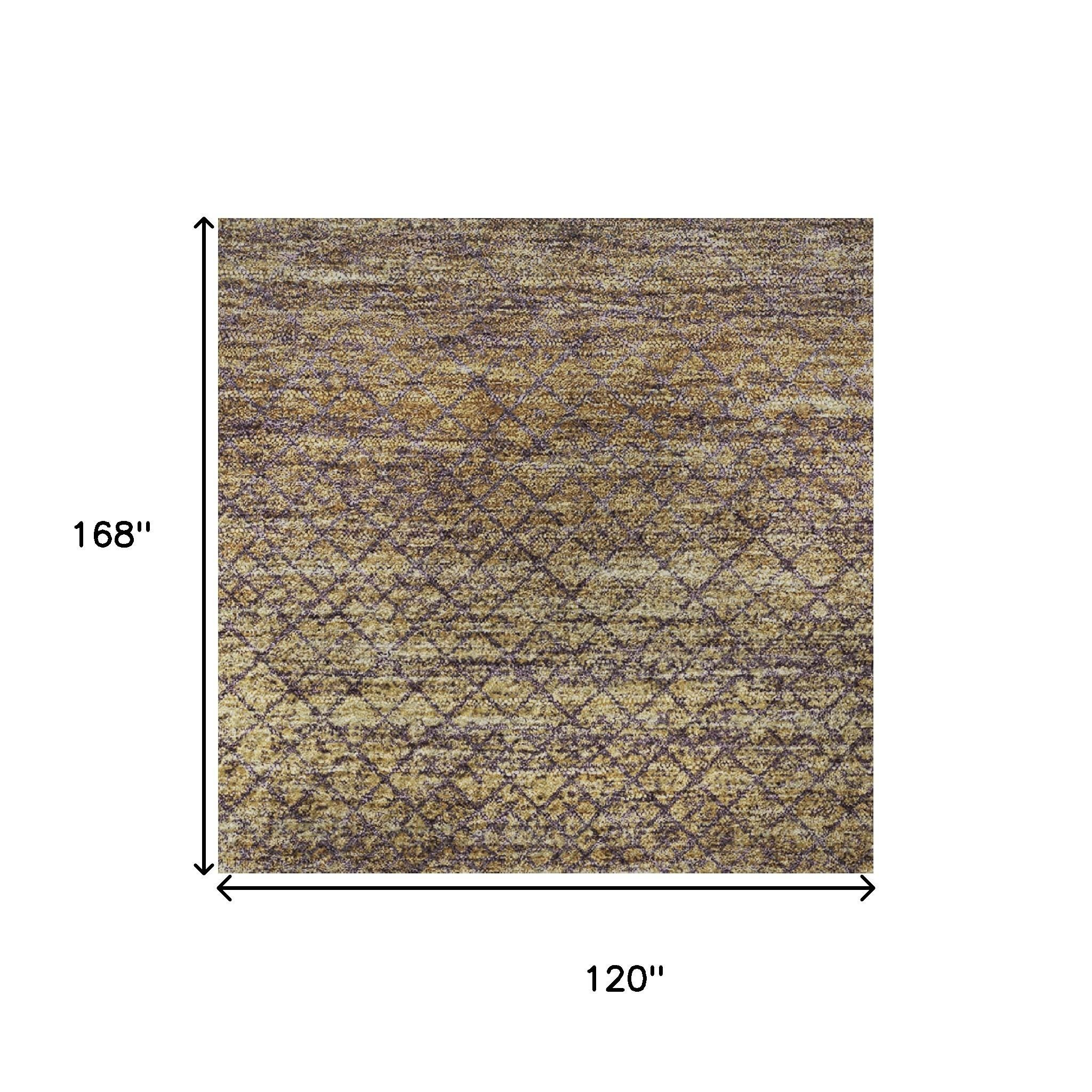 Add great coloration and comfortable texture to your space with this 10-foot x 14-foot eggplant and brown geometric washable area rug with uv protection. Ideal for spaces with kids and pets, this rug is stain resistant to help repel dirt and spilled liquids. Built to last, this rug crafted from polyester fibers is known for its durability and long lasting appeal. Rugs are a great way to showcase your style, hide imperfections, warm your home and reduce noise. This larger sized, transitional styled rug is ready to create a focal point or statement piece in your room. 120.00-inch h x 168.00-inch w x 0.39-inch d.