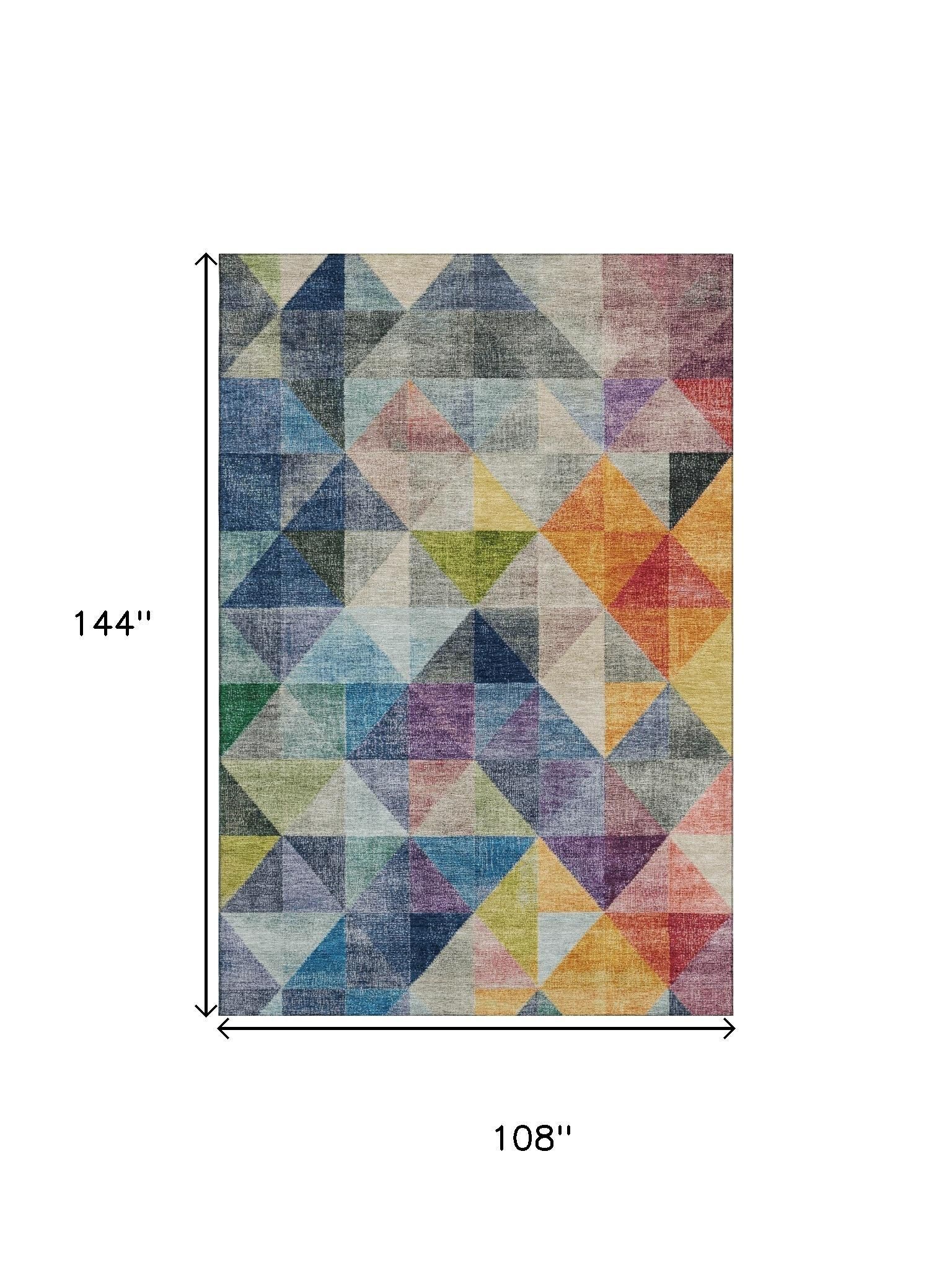 Add great coloration and comfortable texture to your space with this 9-foot x 12-foot beige blue and orange geometric washable area rug with uv protection. Ideal for spaces with kids and pets, this rug is stain resistant to help repel dirt and spilled liquids. Built to last, this rug crafted from polyester fibers is known for its durability and long lasting appeal. Rugs are a great way to showcase your style, hide imperfections, warm your home and reduce noise. This larger sized, transitional styled rug is ready to create a focal point or statement piece in your room. 108.00-inch h x 144.00-inch w x 0.39-inch d.
