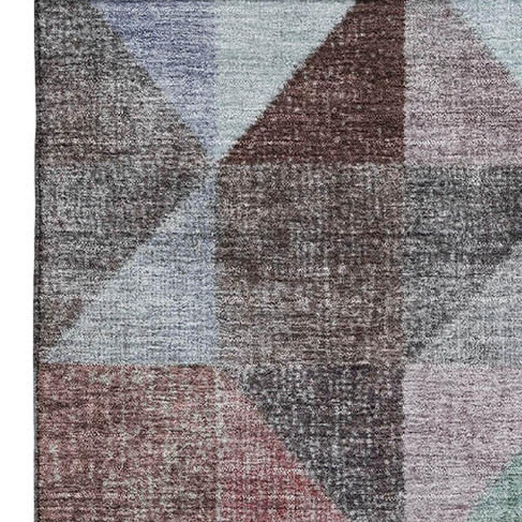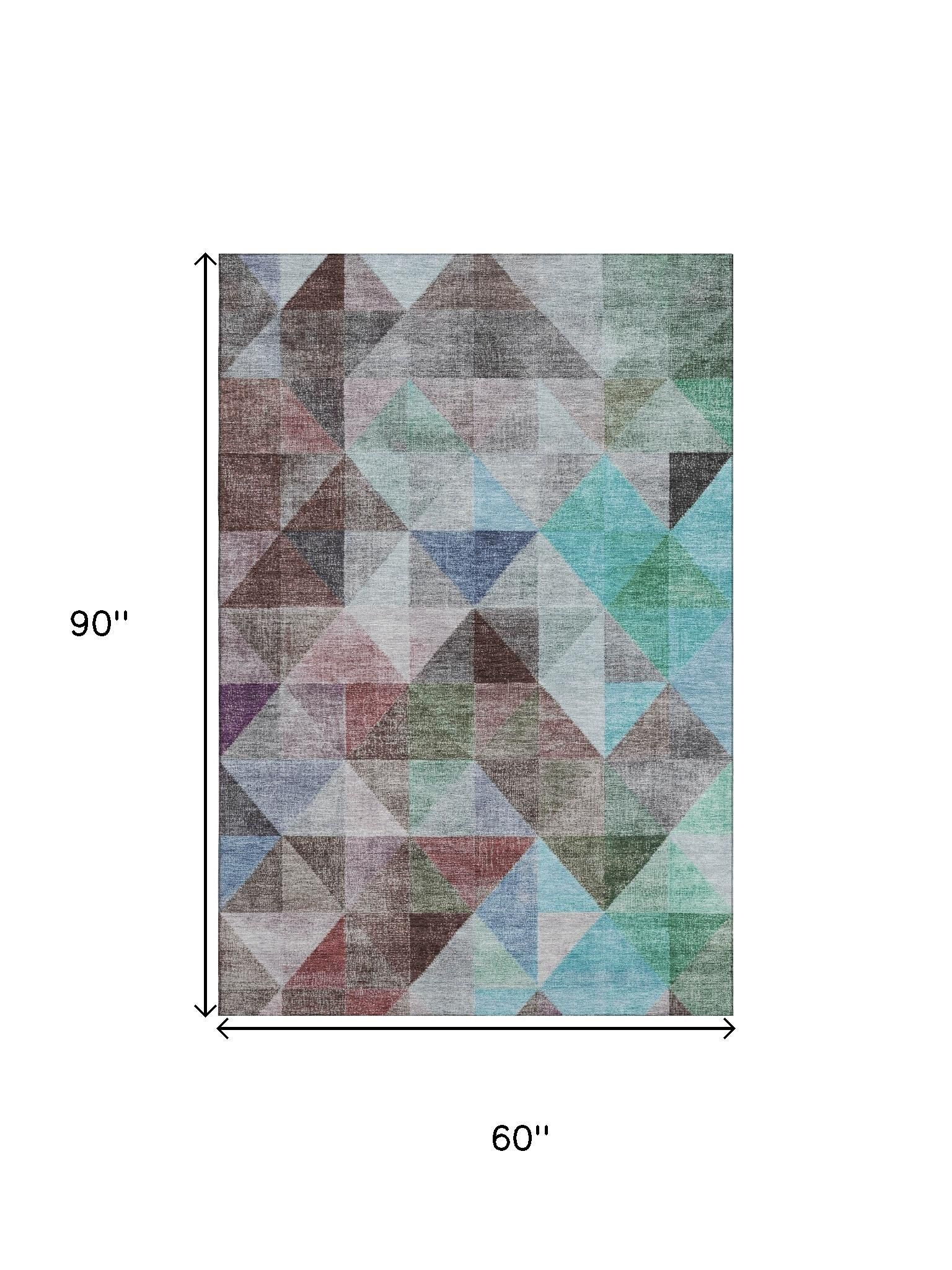 Set an inviting tone in your space with this 5-foot x 8-foot silver purple and blue geometric washable area rug with uv protection. Ideal for spaces with kids and pets, this rug is stain resistant to help repel dirt and spilled liquids. Built to last, this rug crafted from polyester fibers is known for its durability and long lasting appeal. Rugs are a great way to showcase your style, hide imperfections, warm your home and reduce noise. This larger sized, transitional styled rug is ready to create a focal point or statement piece in your room. 60.00-inch h x 90.00-inch w x 0.39-inch d.