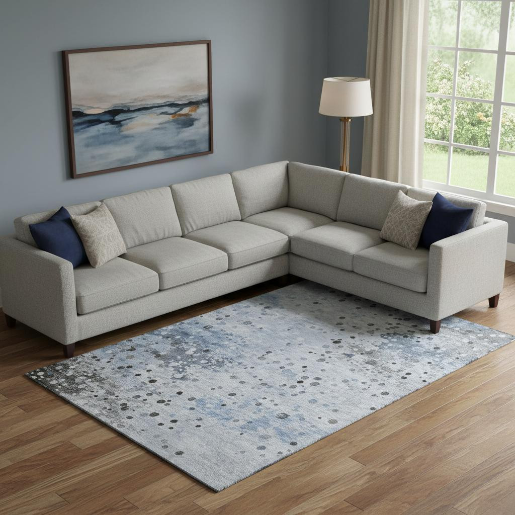 Add some artistry to your room with this 10-foot x 14-foot sky blue charcoal and ivory abstract washable area rug with uv protection. Ideal for spaces with kids and pets, this rug is stain resistant to help repel dirt and spilled liquids. Built to last, this rug crafted from polyester fibers is known for its durability and long lasting appeal. Rugs are a great way to showcase your style, hide imperfections, warm your home and reduce noise. This larger sized, transitional styled rug is ready to create a focal point or statement piece in your room. 120.00-inch h x 168.00-inch w x 0.39-inch d.
