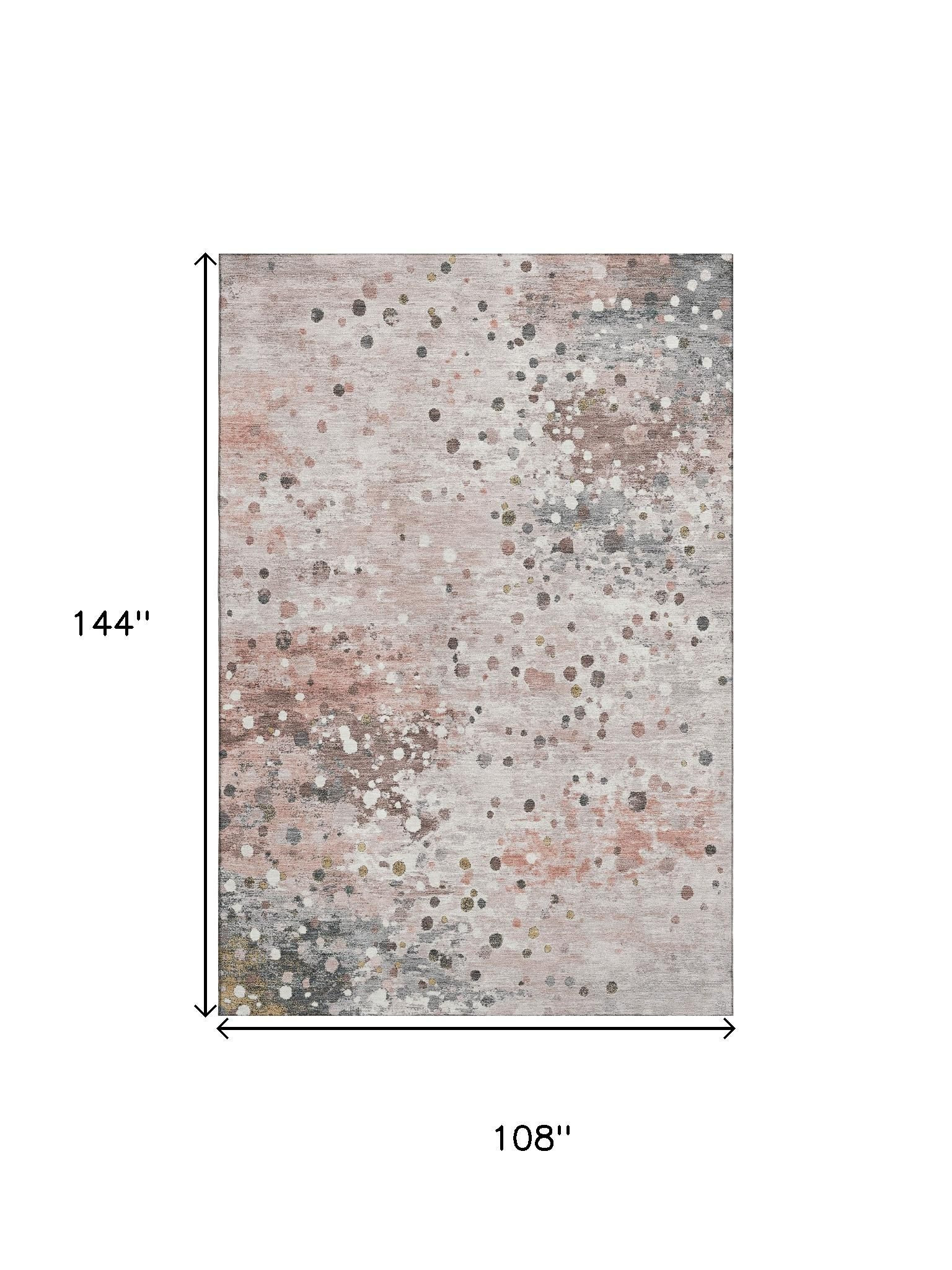 Add great coloration and comfortable texture to your space with this 9-foot x 12-foot salmon ivory and gray abstract washable area rug with uv protection. Ideal for spaces with kids and pets, this rug is stain resistant to help repel dirt and spilled liquids. Built to last, this rug crafted from polyester fibers is known for its durability and long lasting appeal. Rugs are a great way to showcase your style, hide imperfections, warm your home and reduce noise. This larger sized, transitional styled rug is ready to create a focal point or statement piece in your room. 108.00-inch h x 144.00-inch w x 0.39-inch d.