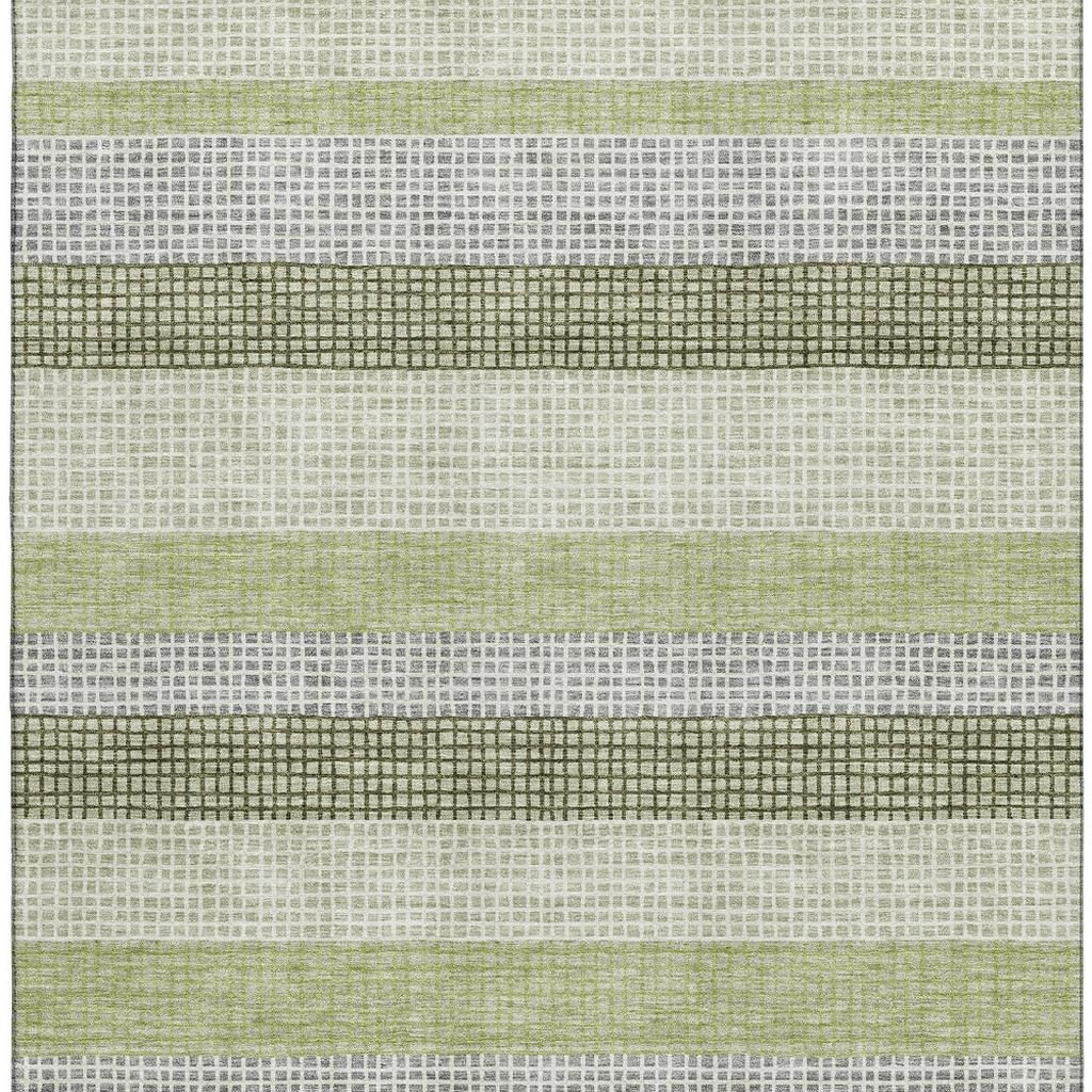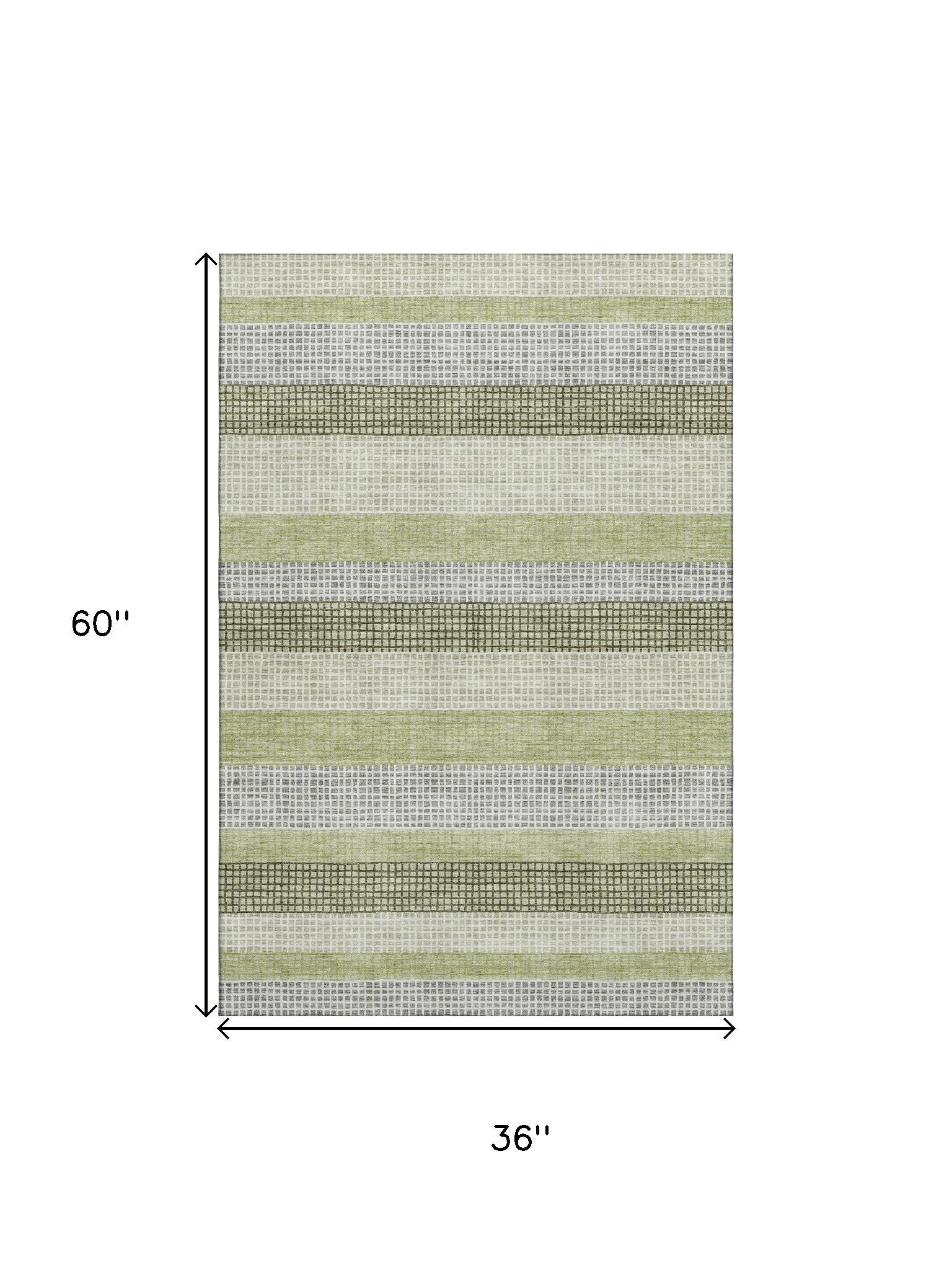Add some artistry to your room with this 3-foot x 5-foot artichoke green ivory and gray striped washable area rug with uv protection. Ideal for spaces with kids and pets, this rug is stain resistant to help repel dirt and spilled liquids. Built to last, this rug crafted from polyester fibers is known for its durability and long lasting appeal. Rugs are a great way to showcase your style, hide imperfections, warm your home and reduce noise. This smaller sized, transitional styled rug is just what you need for your walkway, bedside, in front of door, cabinet, refrigerator, or chair. 36.00-inch h x 60.00-inch w x 0.39-inch d.