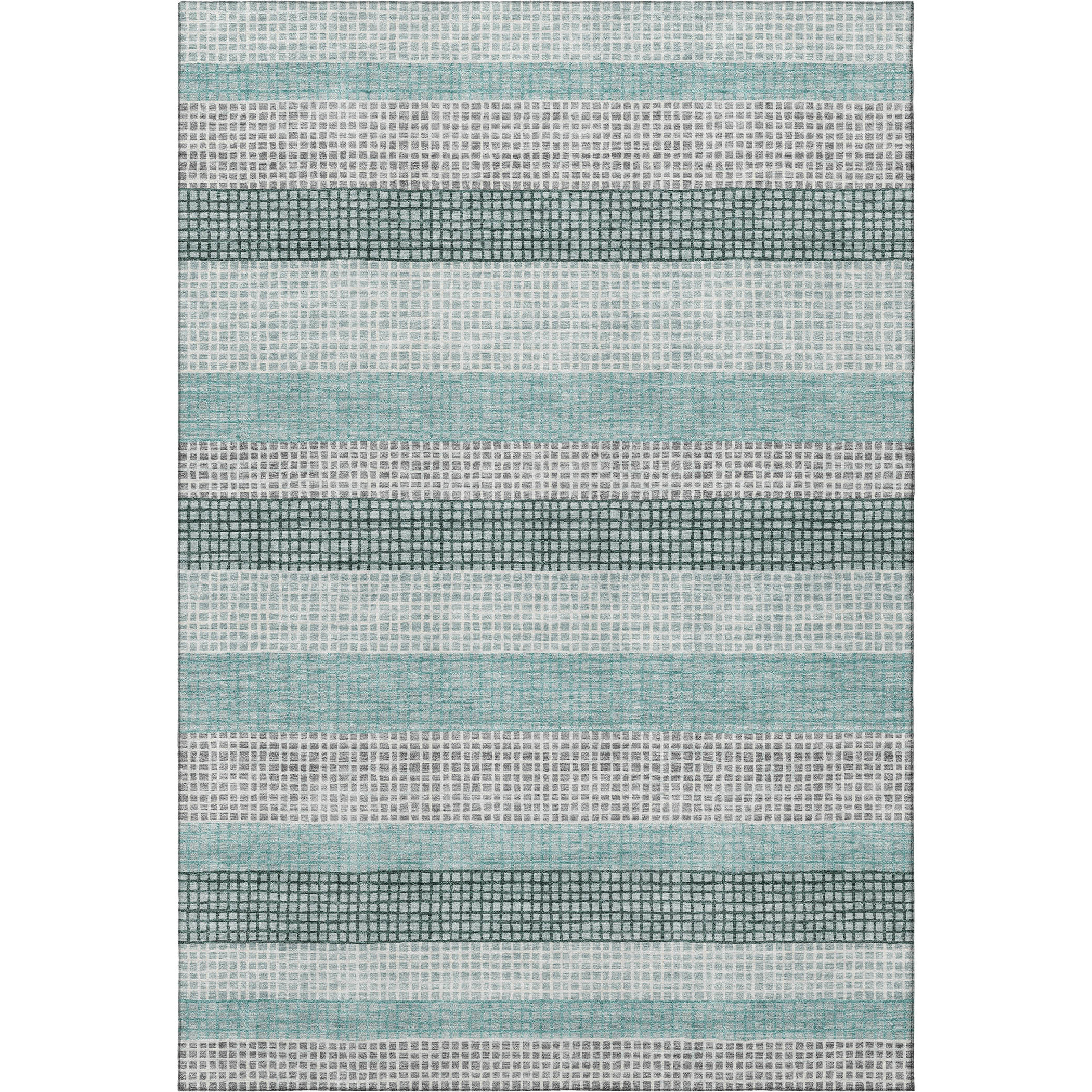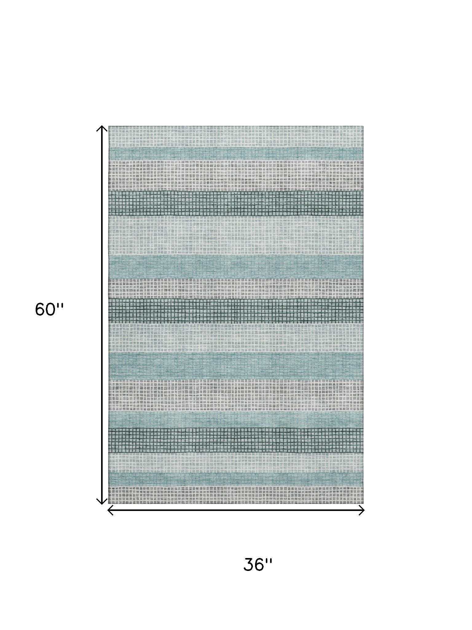 Add great coloration and comfortable texture to your space with this 3-foot x 5-foot teal ivory and gray striped washable area rug with uv protection. Ideal for spaces with kids and pets, this rug is stain resistant to help repel dirt and spilled liquids. Built to last, this rug crafted from polyester fibers is known for its durability and long lasting appeal. Rugs are a great way to showcase your style, hide imperfections, warm your home and reduce noise. This smaller sized, transitional styled rug is just what you need for your walkway, bedside, in front of door, cabinet, refrigerator, or chair. 36.00-inch h x 60.00-inch w x 0.39-inch d.