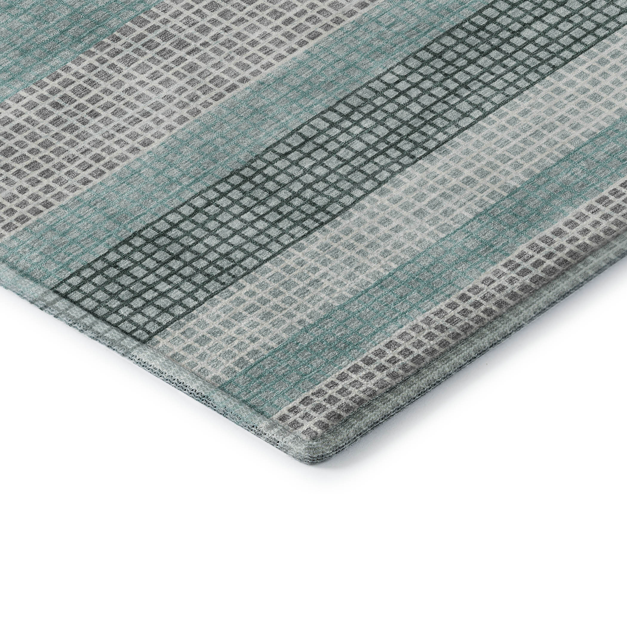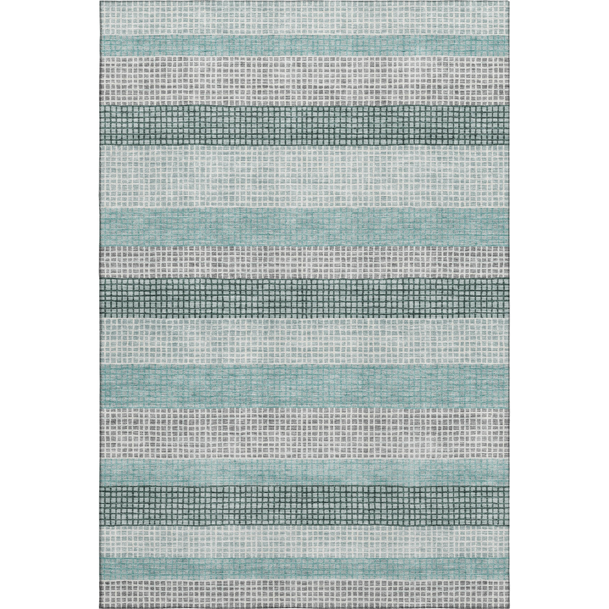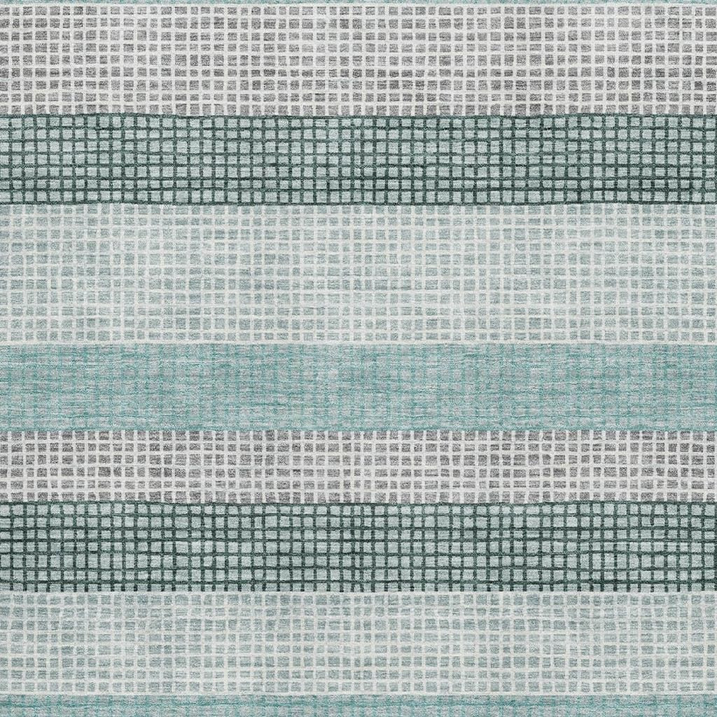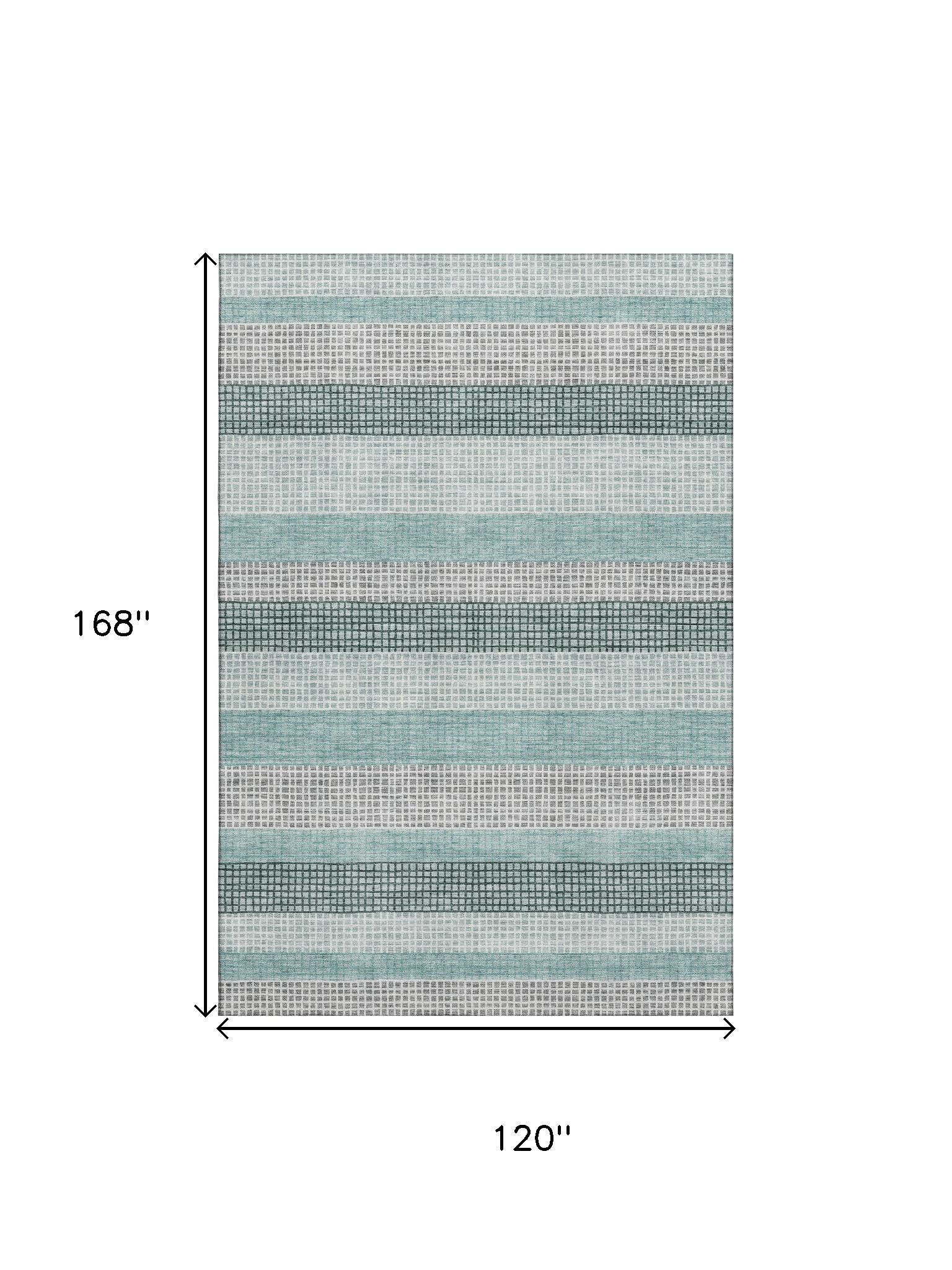 Add great coloration and comfortable texture to your space with this 10-foot x 14-foot teal ivory and gray striped washable area rug with uv protection. Ideal for spaces with kids and pets, this rug is stain resistant to help repel dirt and spilled liquids. Built to last, this rug crafted from polyester fibers is known for its durability and long lasting appeal. Rugs are a great way to showcase your style, hide imperfections, warm your home and reduce noise. This larger sized, transitional styled rug is ready to create a focal point or statement piece in your room. 120.00-inch h x 168.00-inch w x 0.39-inch d.