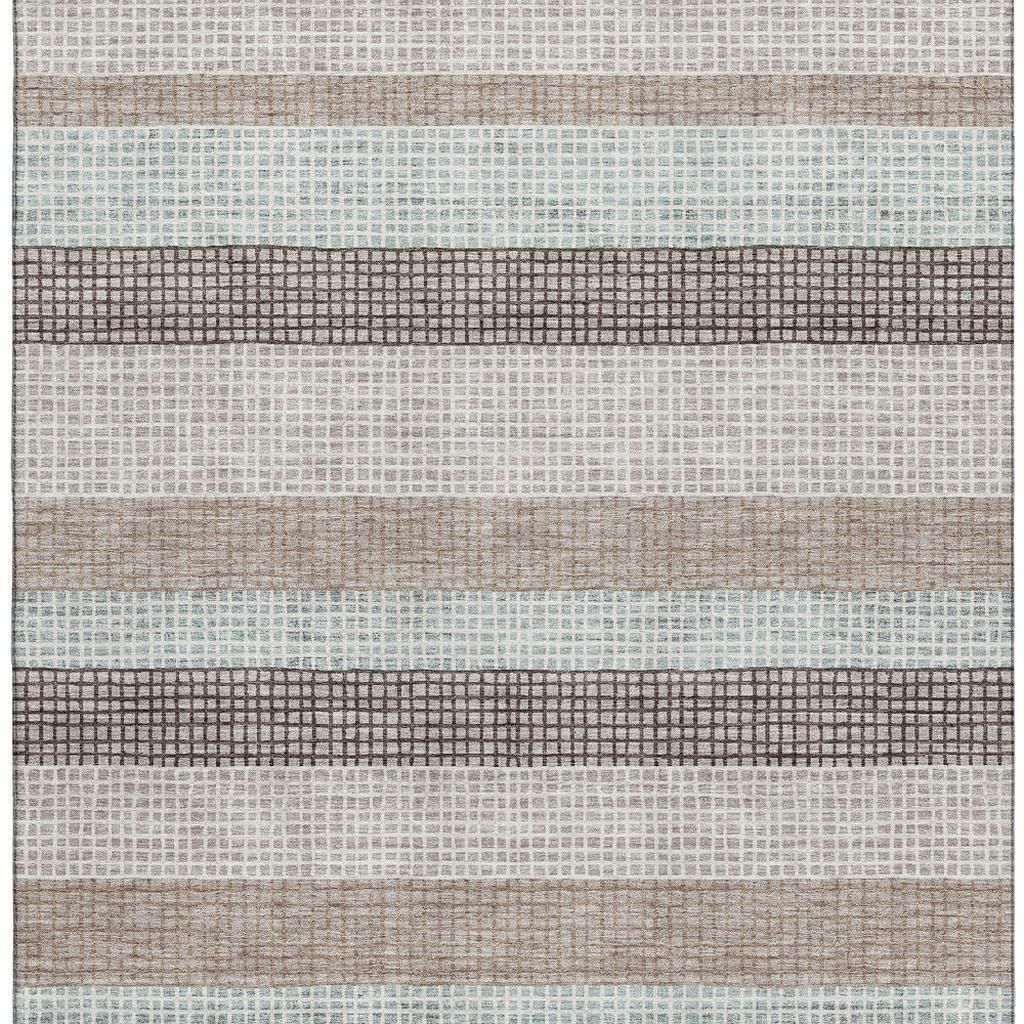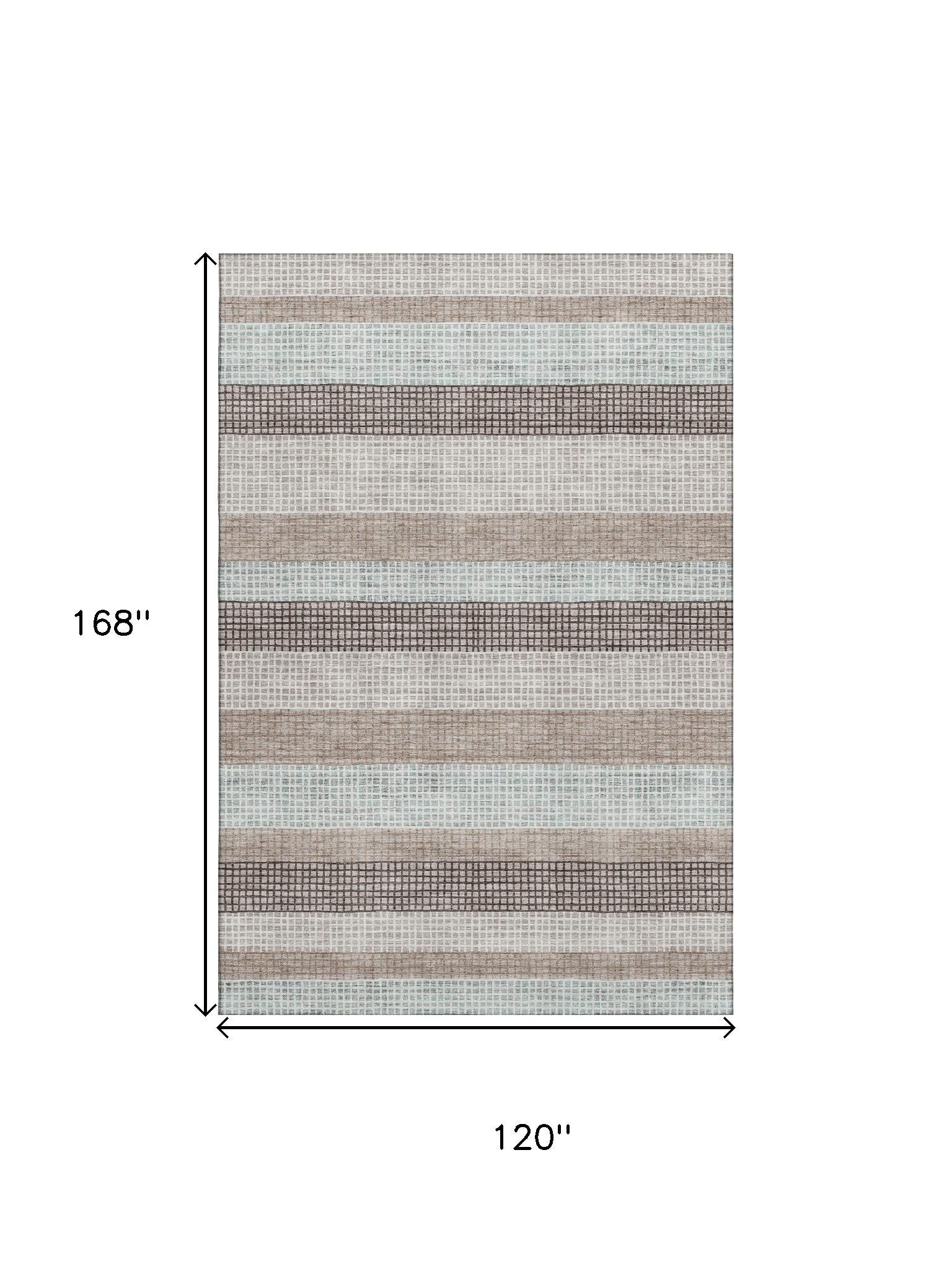 Add some artistry to your room with this 10-foot x 14-foot taupe ivory and brown striped washable area rug with uv protection. Ideal for spaces with kids and pets, this rug is stain resistant to help repel dirt and spilled liquids. Built to last, this rug crafted from polyester fibers is known for its durability and long lasting appeal. Rugs are a great way to showcase your style, hide imperfections, warm your home and reduce noise. This larger sized, transitional styled rug is ready to create a focal point or statement piece in your room. 120.00-inch h x 168.00-inch w x 0.39-inch d.