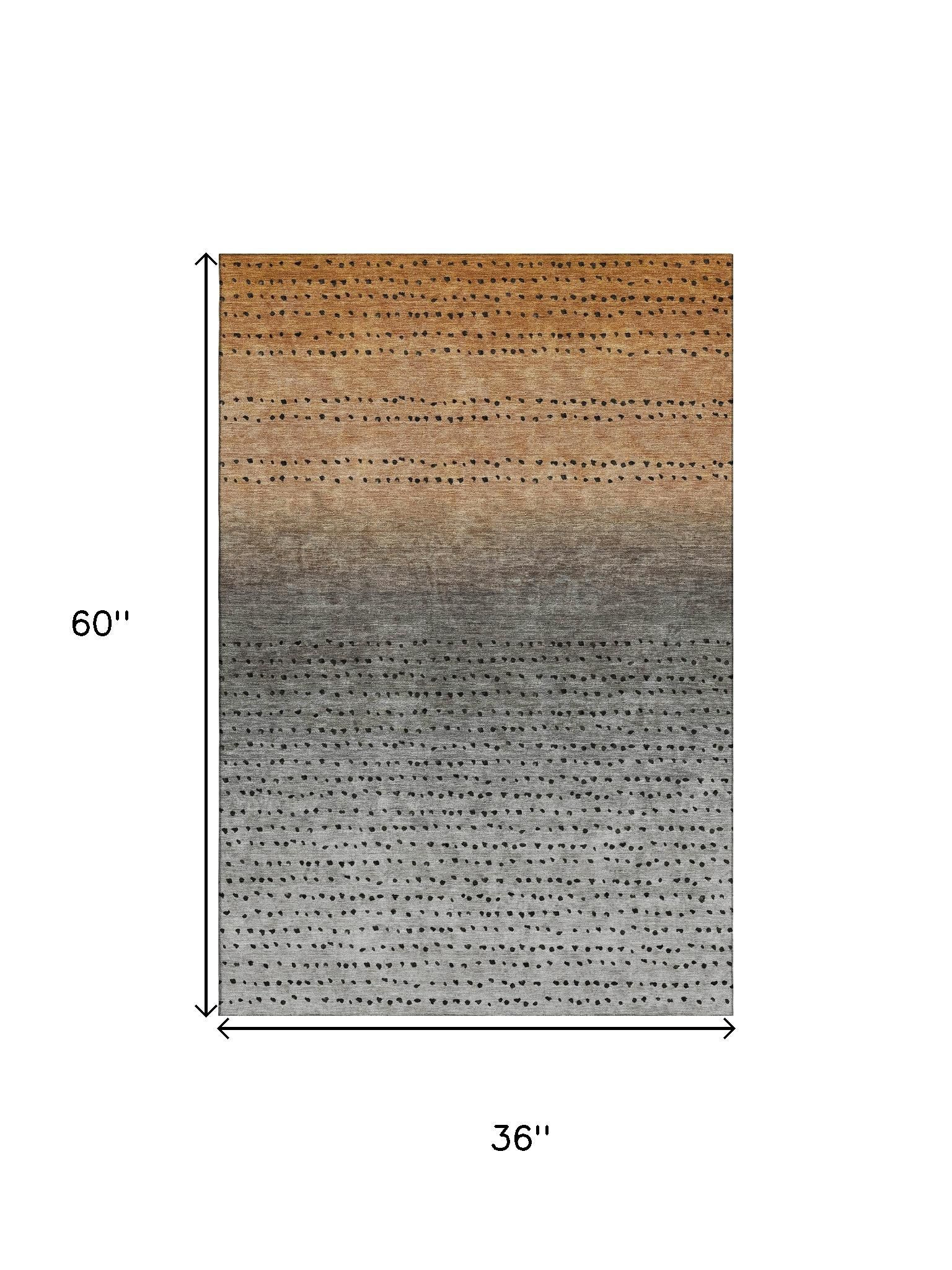 Add great coloration and comfortable texture to your space with this 3-foot x 5-foot copper gray and silver abstract washable area rug with uv protection. Ideal for spaces with kids and pets, this rug is stain resistant to help repel dirt and spilled liquids. Built to last, this rug crafted from polyester fibers is known for its durability and long lasting appeal. Rugs are a great way to showcase your style, hide imperfections, warm your home and reduce noise. This smaller sized, transitional styled rug is just what you need for your walkway, bedside, in front of door, cabinet, refrigerator, or chair. 36.00-inch h x 60.00-inch w x 0.39-inch d.