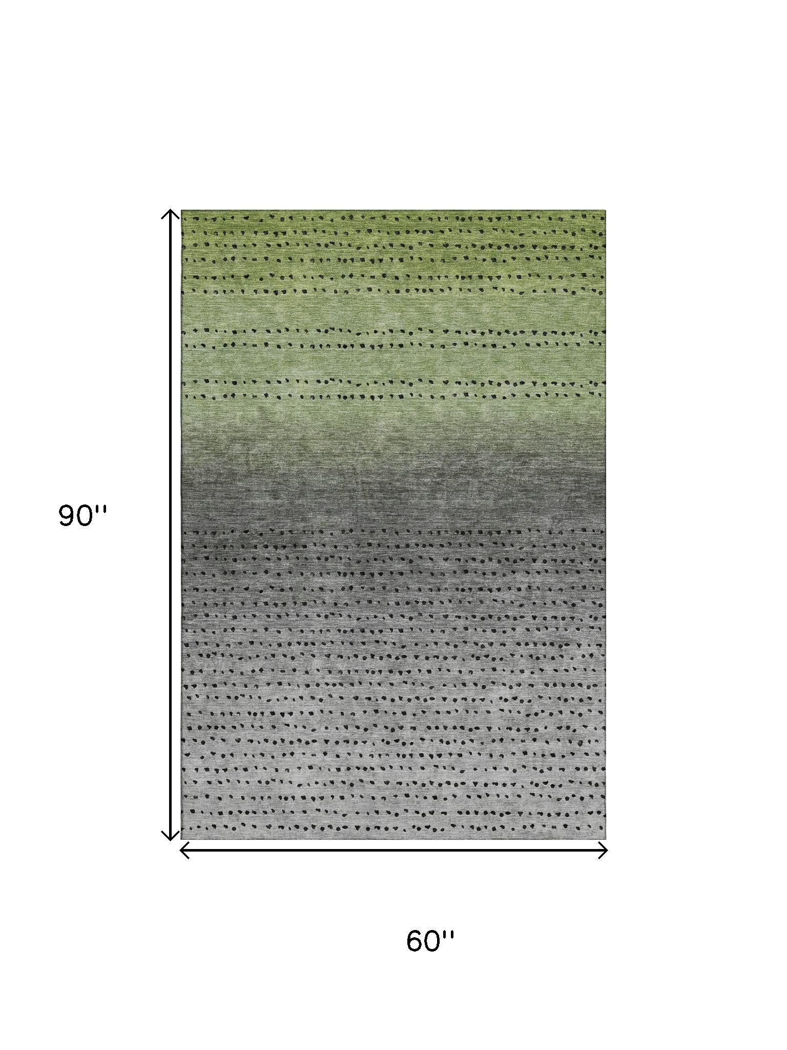 Add some artistry to your room with this 5-foot x 8-foot fern green charcoal and silver abstract washable area rug with uv protection. Ideal for spaces with kids and pets, this rug is stain resistant to help repel dirt and spilled liquids. Built to last, this rug crafted from polyester fibers is known for its durability and long lasting appeal. Rugs are a great way to showcase your style, hide imperfections, warm your home and reduce noise. This larger sized, transitional styled rug is ready to create a focal point or statement piece in your room. 60.00-inch h x 90.00-inch w x 0.39-inch d.