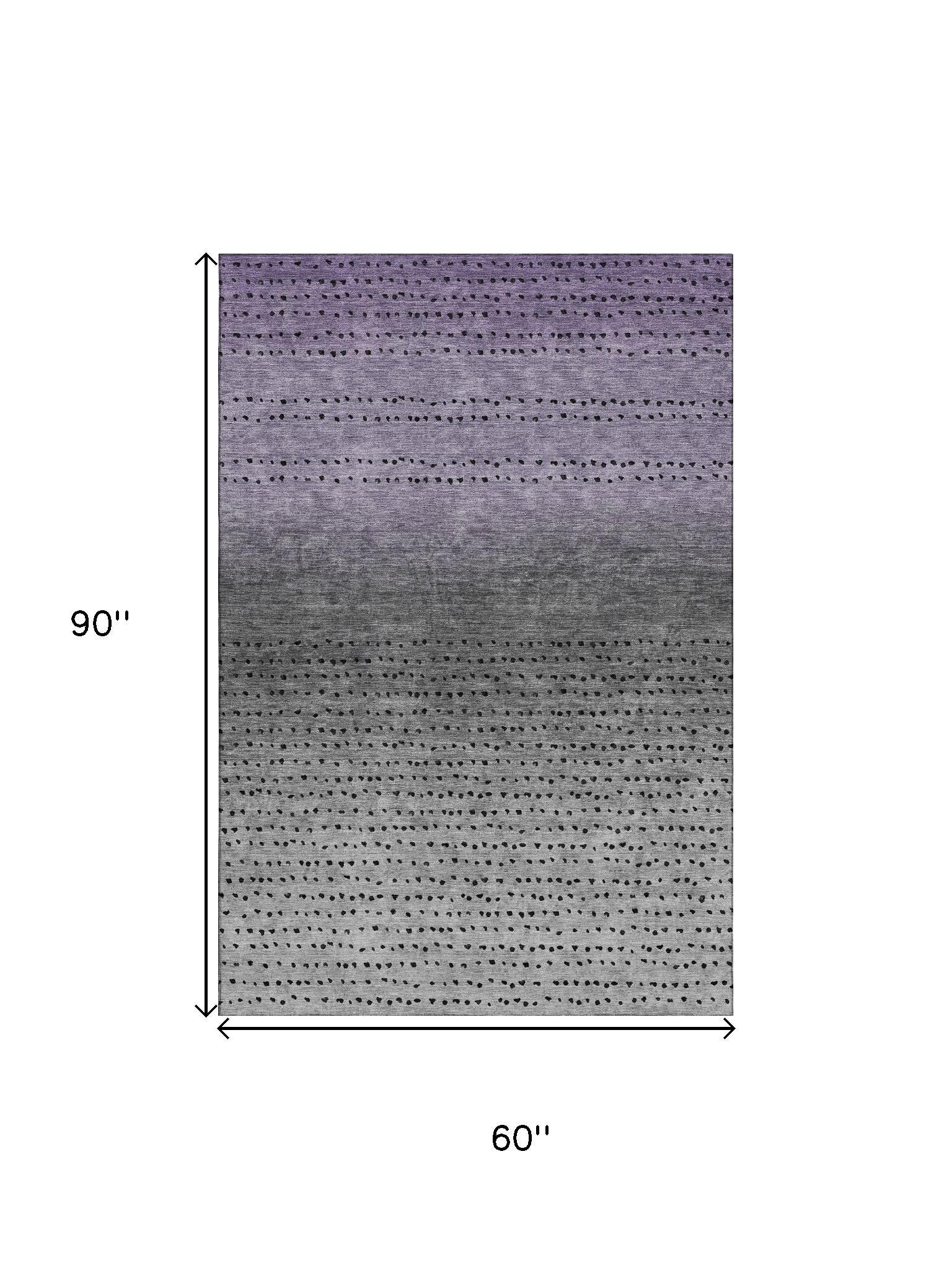 Set an inviting tone in your space with this 5-foot x 8-foot purple charcoal and gray abstract washable area rug with uv protection. Ideal for spaces with kids and pets, this rug is stain resistant to help repel dirt and spilled liquids. Built to last, this rug crafted from polyester fibers is known for its durability and long lasting appeal. Rugs are a great way to showcase your style, hide imperfections, warm your home and reduce noise. This larger sized, transitional styled rug is ready to create a focal point or statement piece in your room. 60.00-inch h x 90.00-inch w x 0.39-inch d.