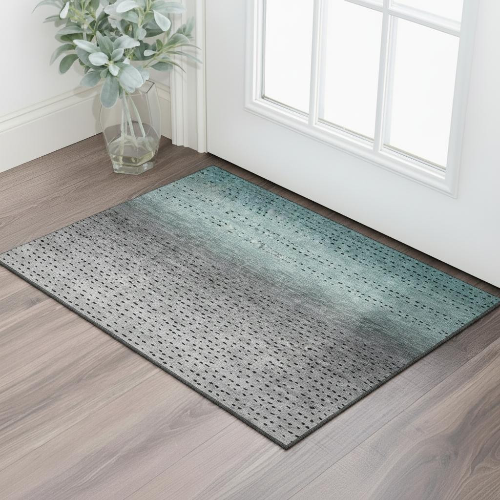 This 3-foot x 5-foot teal charcoal and gray abstract washable area rug with uv protection, is a great way to add warmth to a room. Ideal for spaces with kids and pets, this rug is stain resistant to help repel dirt and spilled liquids. Built to last, this rug crafted from polyester fibers is known for its durability and long lasting appeal. Rugs are a great way to showcase your style, hide imperfections, warm your home and reduce noise. This smaller sized, transitional styled rug is just what you need for your walkway, bedside, in front of door, cabinet, refrigerator, or chair. 36.00-inch h x 60.00-inch w x 0.39-inch d.