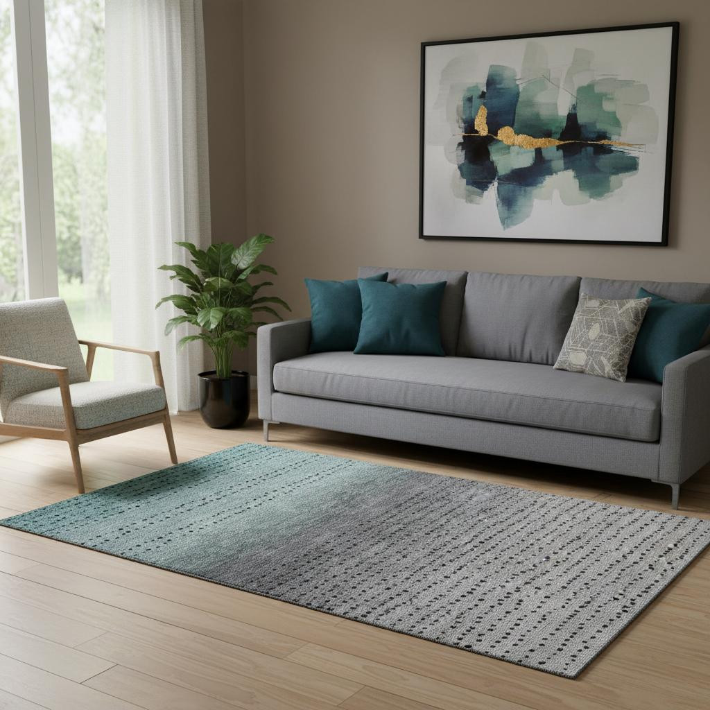 Add great coloration and comfortable texture to your space with this 5-foot x 8-foot teal charcoal and gray abstract washable area rug with uv protection. Ideal for spaces with kids and pets, this rug is stain resistant to help repel dirt and spilled liquids. Built to last, this rug crafted from polyester fibers is known for its durability and long lasting appeal. Rugs are a great way to showcase your style, hide imperfections, warm your home and reduce noise. This larger sized, transitional styled rug is ready to create a focal point or statement piece in your room. 60.00-inch h x 90.00-inch w x 0.39-inch d.