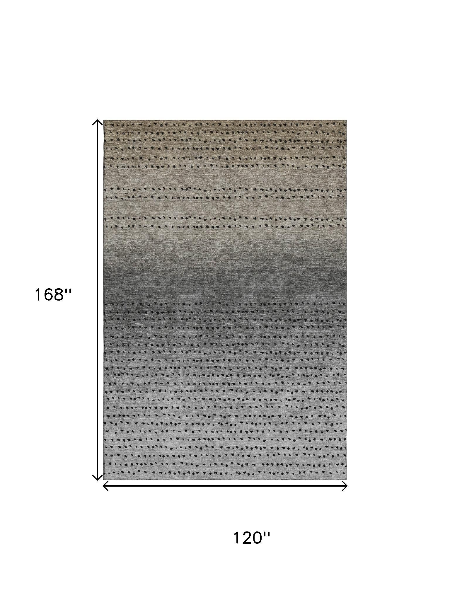 Add some artistry to your room with this 10-foot x 14-foot taupe charcoal and gray abstract washable area rug with uv protection. Ideal for spaces with kids and pets, this rug is stain resistant to help repel dirt and spilled liquids. Built to last, this rug crafted from polyester fibers is known for its durability and long lasting appeal. Rugs are a great way to showcase your style, hide imperfections, warm your home and reduce noise. This larger sized, transitional styled rug is ready to create a focal point or statement piece in your room. 120.00-inch h x 168.00-inch w x 0.39-inch d.