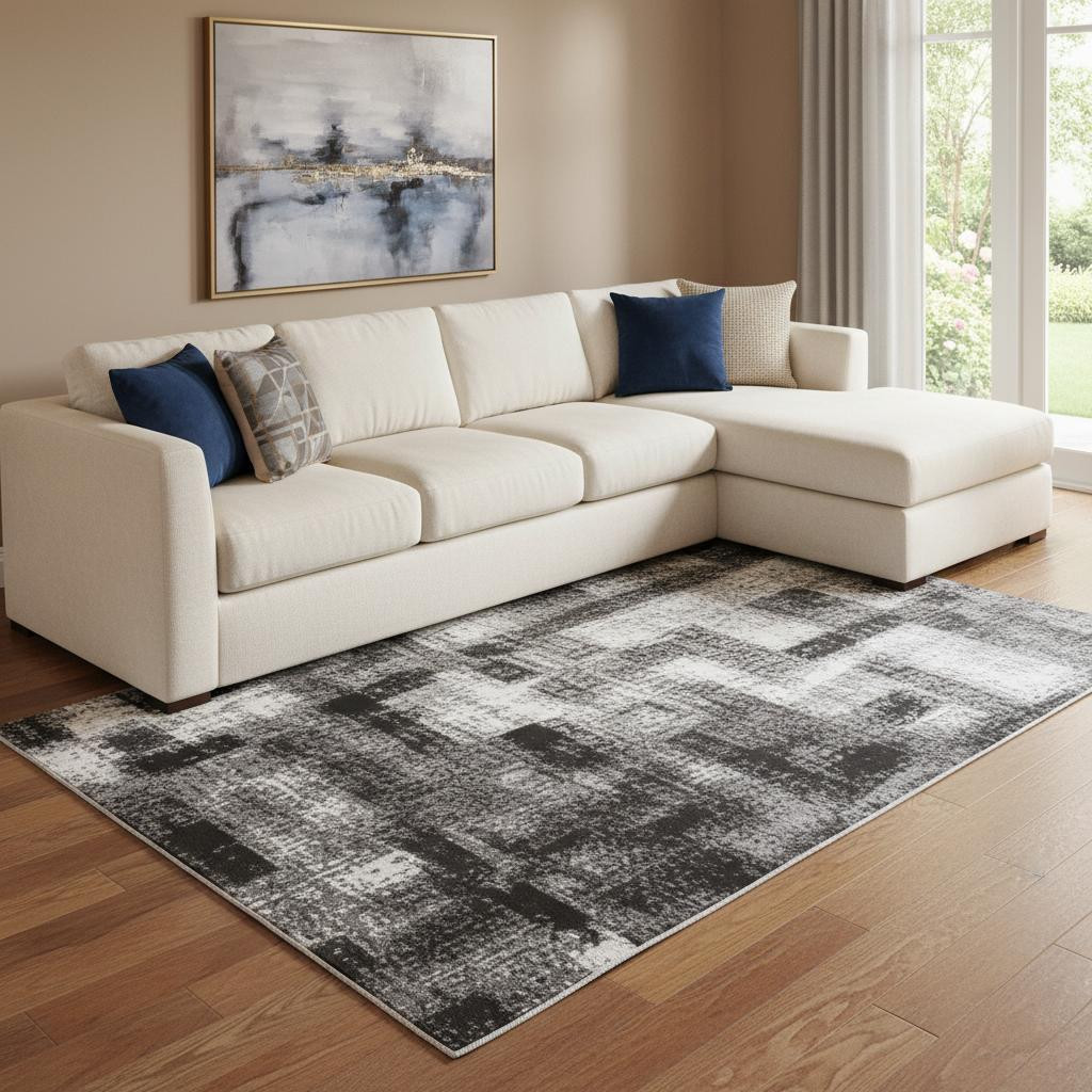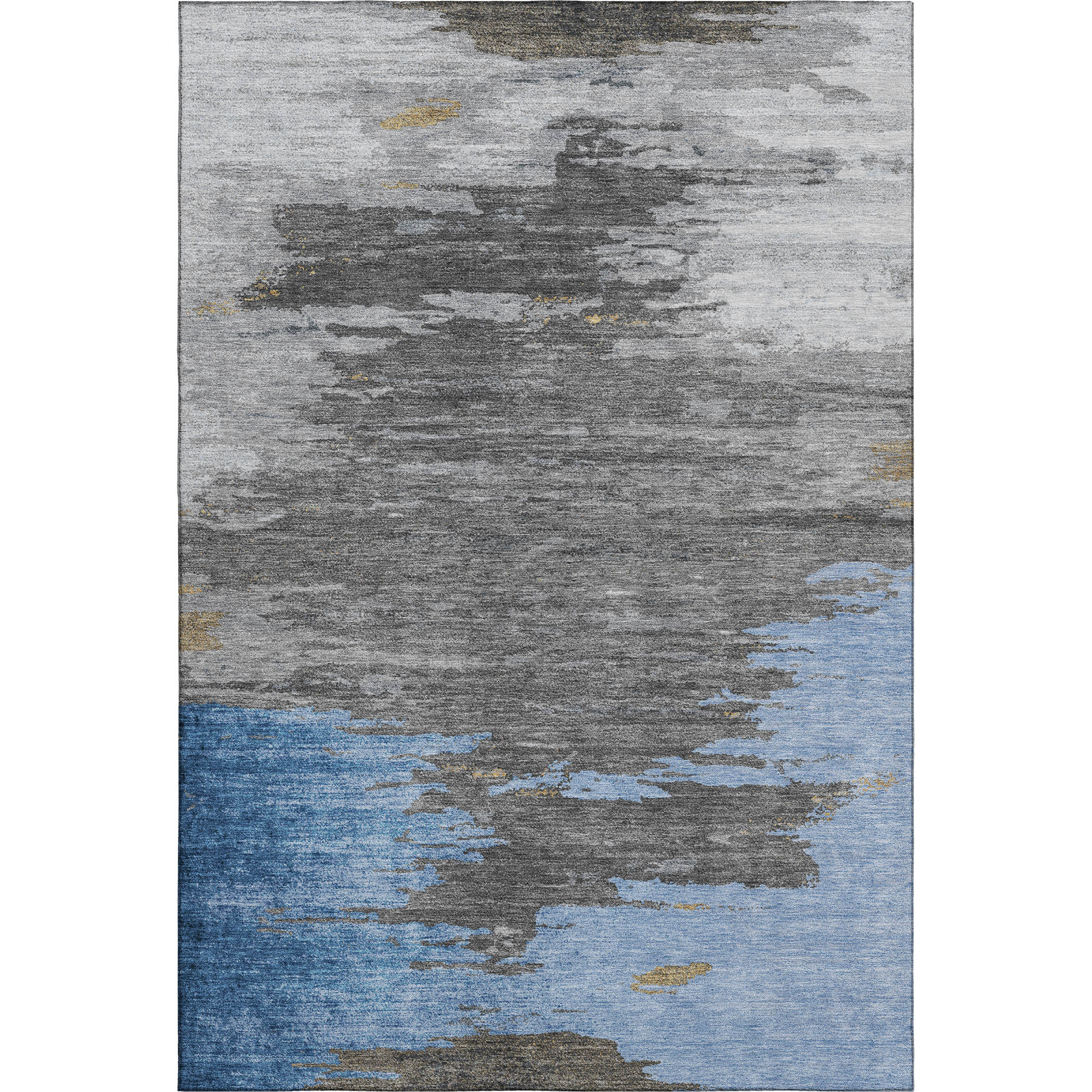 Add some artistry to your room with this 8-foot x 10-foot denim blue charcoal and gray abstract washable area rug with uv protection. Ideal for spaces with kids and pets, this rug is stain resistant to help repel dirt and spilled liquids. Built to last, this rug crafted from polyester fibers is known for its durability and long lasting appeal. Rugs are a great way to showcase your style, hide imperfections, warm your home and reduce noise. This larger sized, transitional styled rug is ready to create a focal point or statement piece in your room. 96.00-inch h x 120.00-inch w x 0.39-inch d.