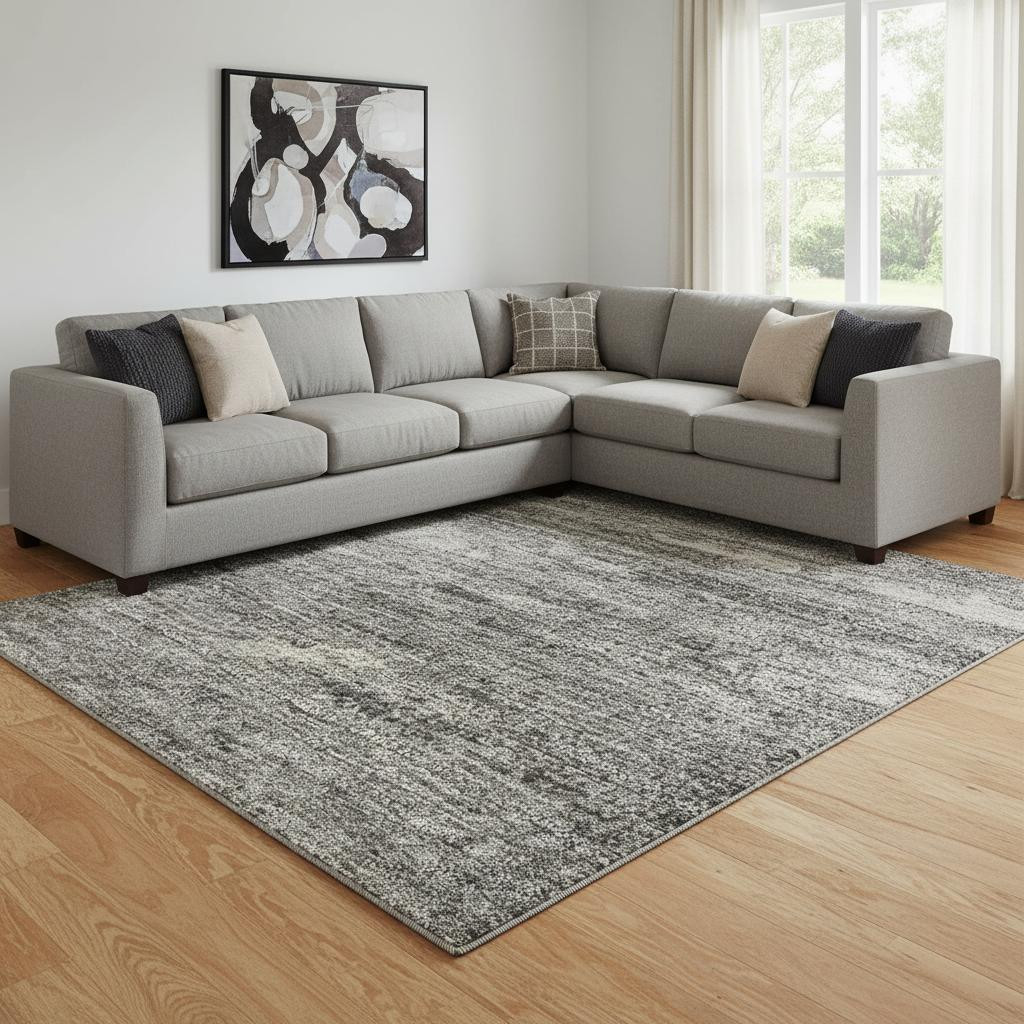 Set an inviting tone in your space with this 8-foot x 10-foot gold charcoal and gray abstract washable area rug with uv protection. Ideal for spaces with kids and pets, this rug is stain resistant to help repel dirt and spilled liquids. Built to last, this rug crafted from polyester fibers is known for its durability and long lasting appeal. Rugs are a great way to showcase your style, hide imperfections, warm your home and reduce noise. This larger sized, transitional styled rug is ready to create a focal point or statement piece in your room. 96.00-inch h x 120.00-inch w x 0.39-inch d.