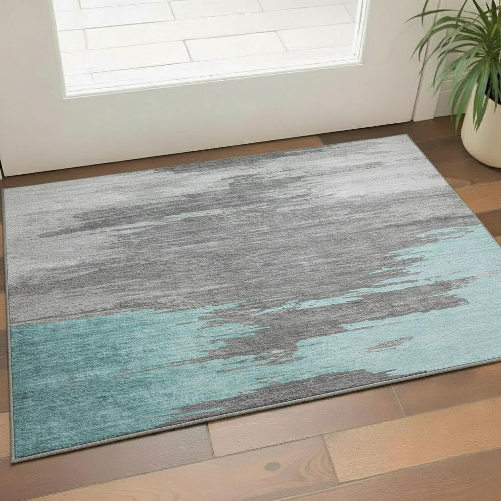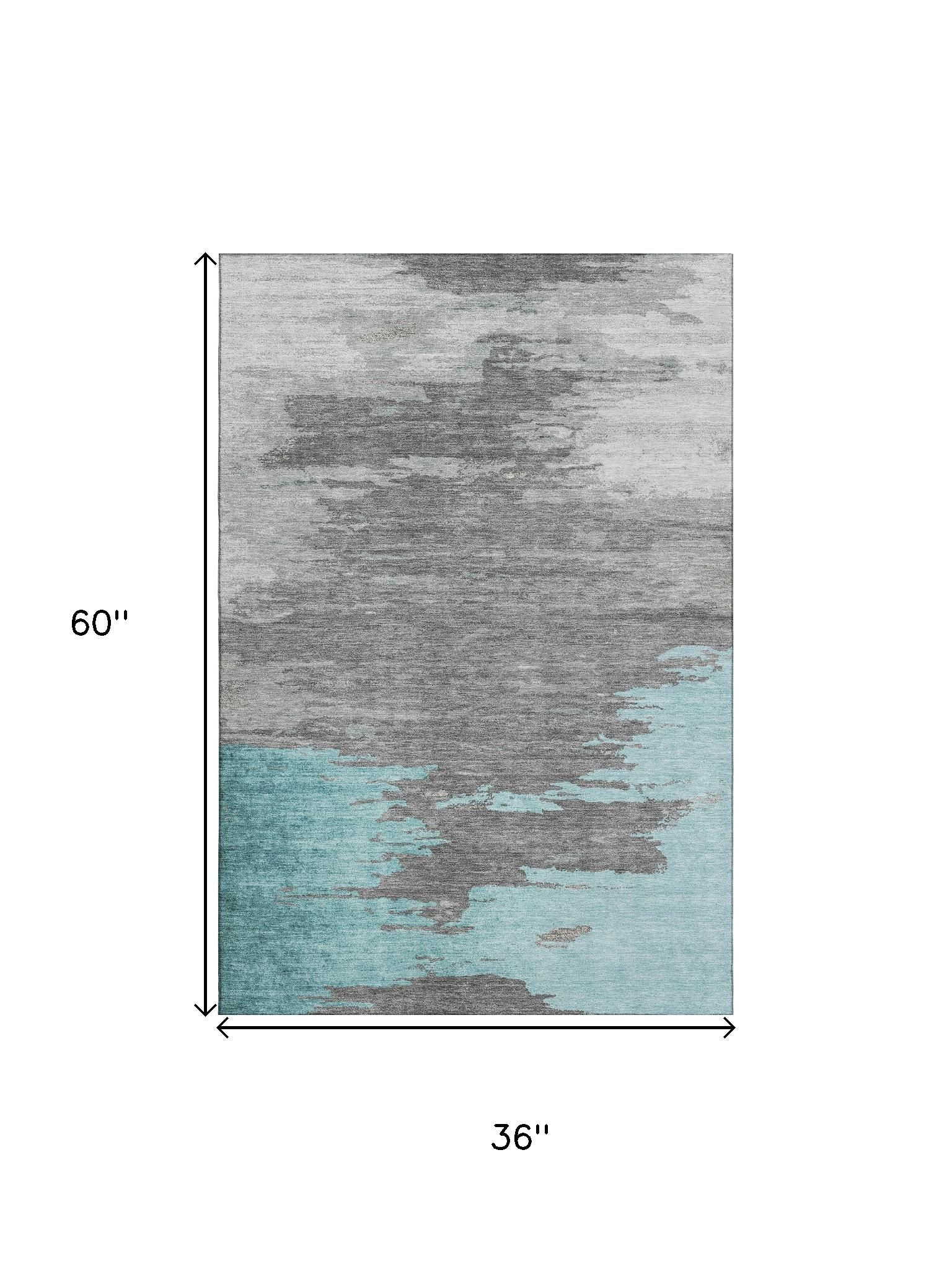 Add great coloration and comfortable texture to your space with this 3-foot x 5-foot teal charcoal and gray abstract washable area rug with uv protection. Ideal for spaces with kids and pets, this rug is stain resistant to help repel dirt and spilled liquids. Built to last, this rug crafted from polyester fibers is known for its durability and long lasting appeal. Rugs are a great way to showcase your style, hide imperfections, warm your home and reduce noise. This smaller sized, transitional styled rug is just what you need for your walkway, bedside, in front of door, cabinet, refrigerator, or chair. 36.00-inch h x 60.00-inch w x 0.39-inch d.
