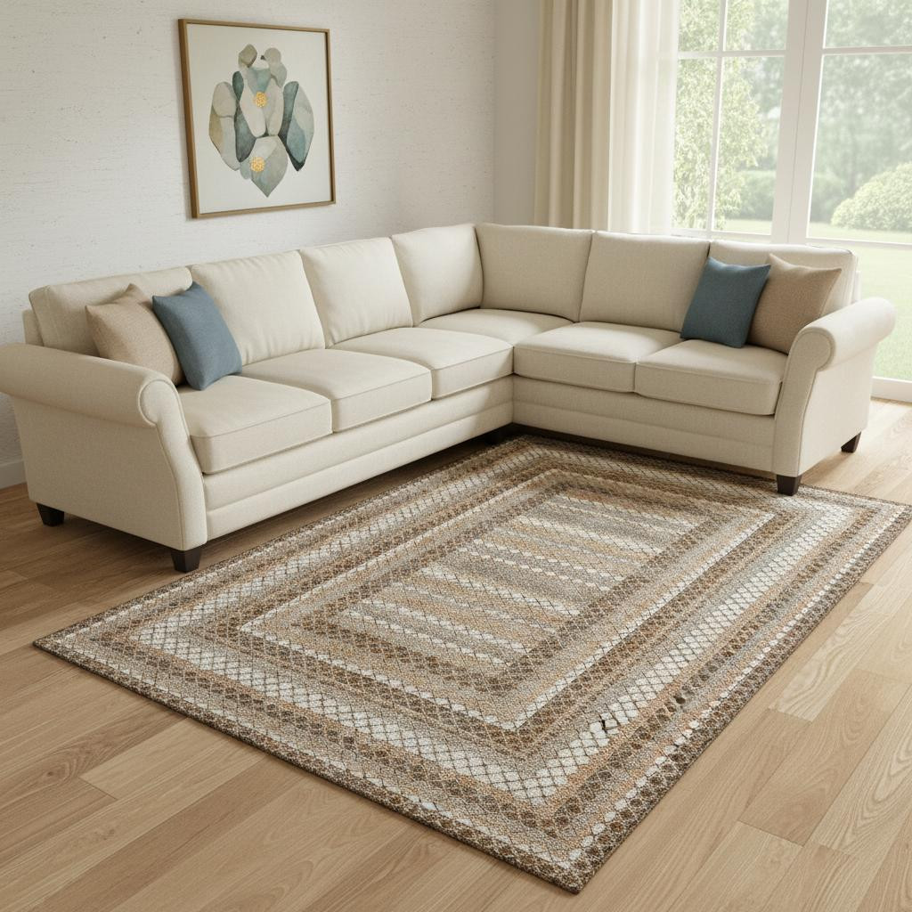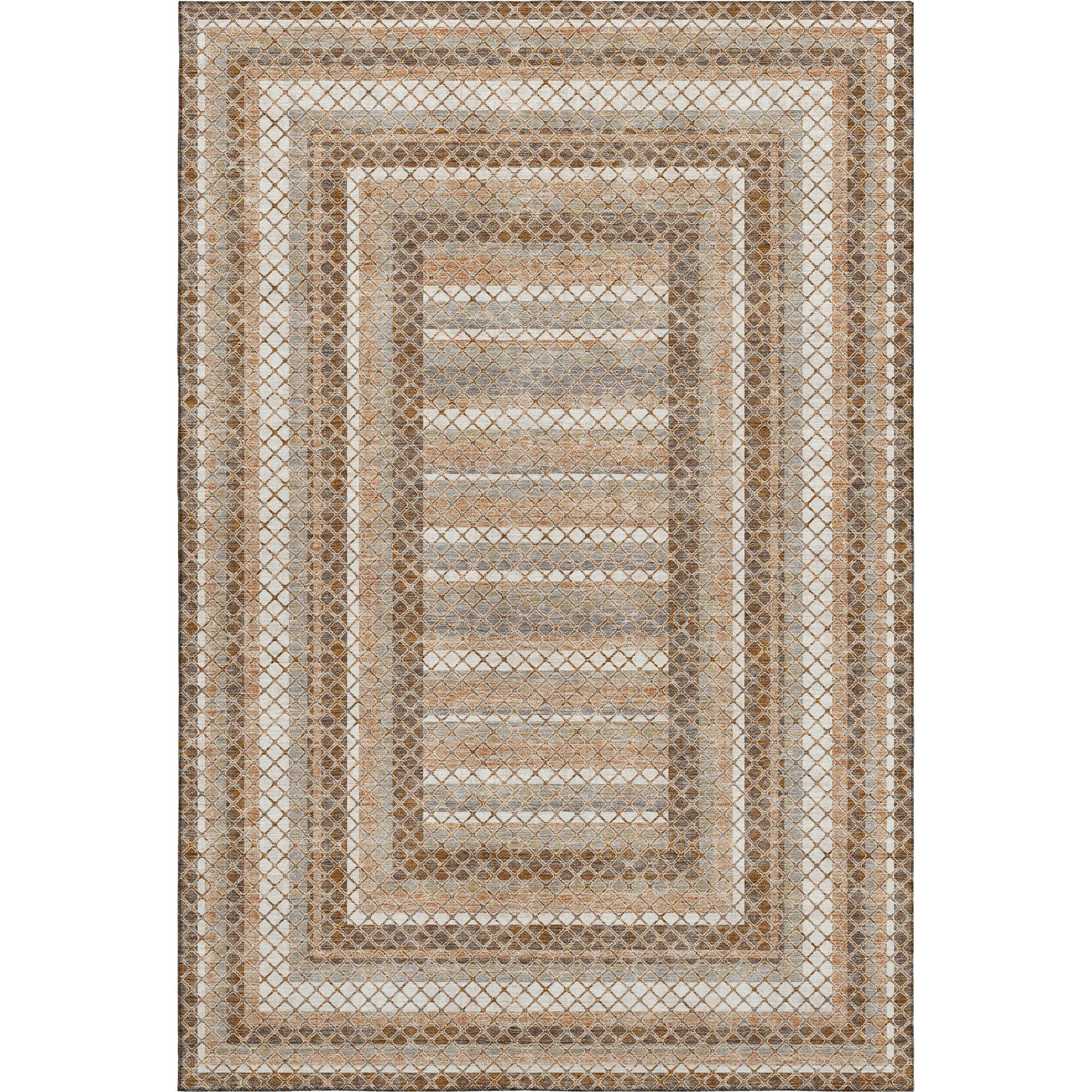 Add great coloration and comfortable texture to your space with this 8-foot x 10-foot chocolate ivory and beige geometric washable area rug with uv protection. Ideal for spaces with kids and pets, this rug is stain resistant to help repel dirt and spilled liquids. Built to last, this rug crafted from polyester fibers is known for its durability and long lasting appeal. Rugs are a great way to showcase your style, hide imperfections, warm your home and reduce noise. This larger sized, transitional styled rug is ready to create a focal point or statement piece in your room. 96.00-inch h x 120.00-inch w x 0.39-inch d.