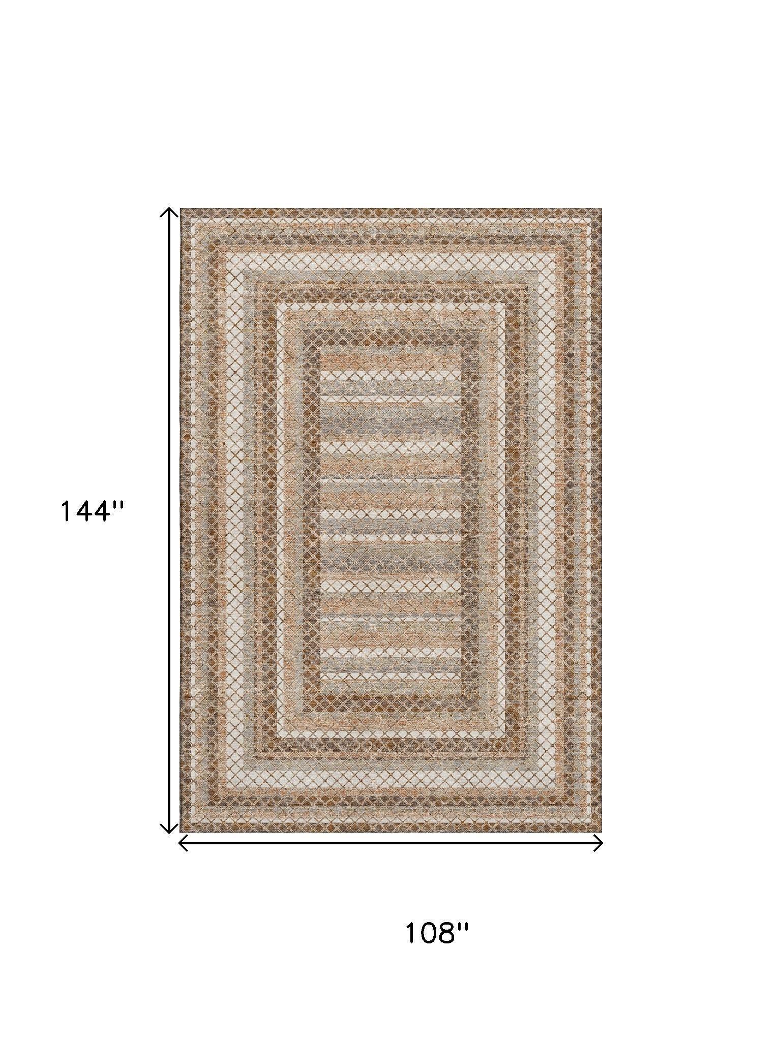 Set an inviting tone in your space with this 9-foot x 12-foot chocolate ivory and beige geometric washable area rug with uv protection. Ideal for spaces with kids and pets, this rug is stain resistant to help repel dirt and spilled liquids. Built to last, this rug crafted from polyester fibers is known for its durability and long lasting appeal. Rugs are a great way to showcase your style, hide imperfections, warm your home and reduce noise. This larger sized, transitional styled rug is ready to create a focal point or statement piece in your room. 108.00-inch h x 144.00-inch w x 0.39-inch d.