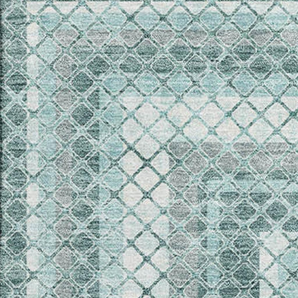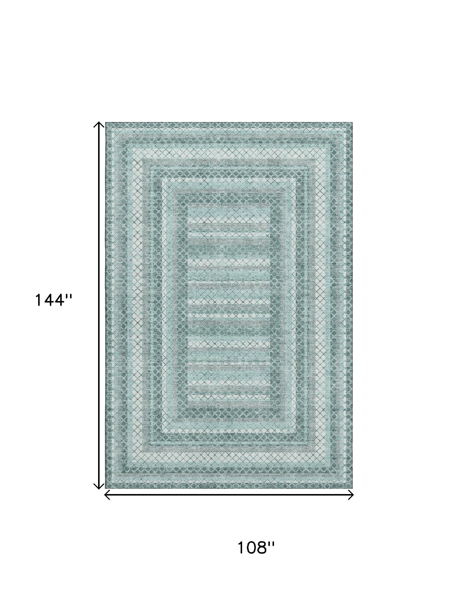 Set an inviting tone in your space with this 9-foot x 12-foot teal ivory and gray geometric washable area rug with uv protection. Ideal for spaces with kids and pets, this rug is stain resistant to help repel dirt and spilled liquids. Built to last, this rug crafted from polyester fibers is known for its durability and long lasting appeal. Rugs are a great way to showcase your style, hide imperfections, warm your home and reduce noise. This larger sized, transitional styled rug is ready to create a focal point or statement piece in your room. 108.00-inch h x 144.00-inch w x 0.39-inch d.