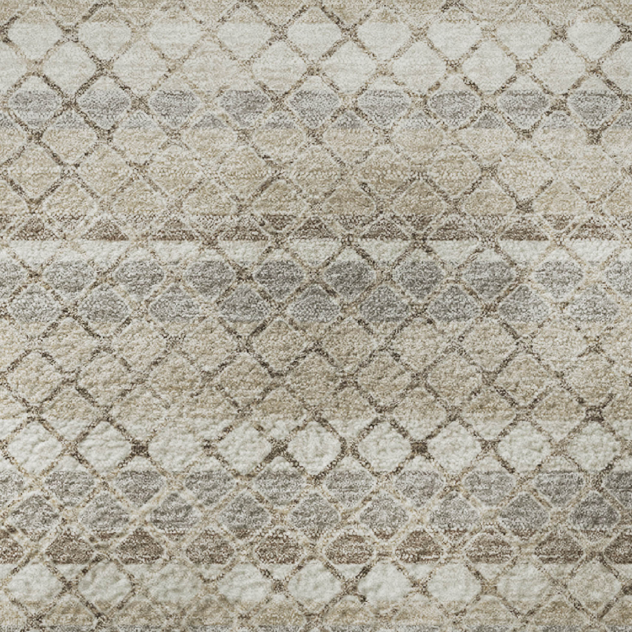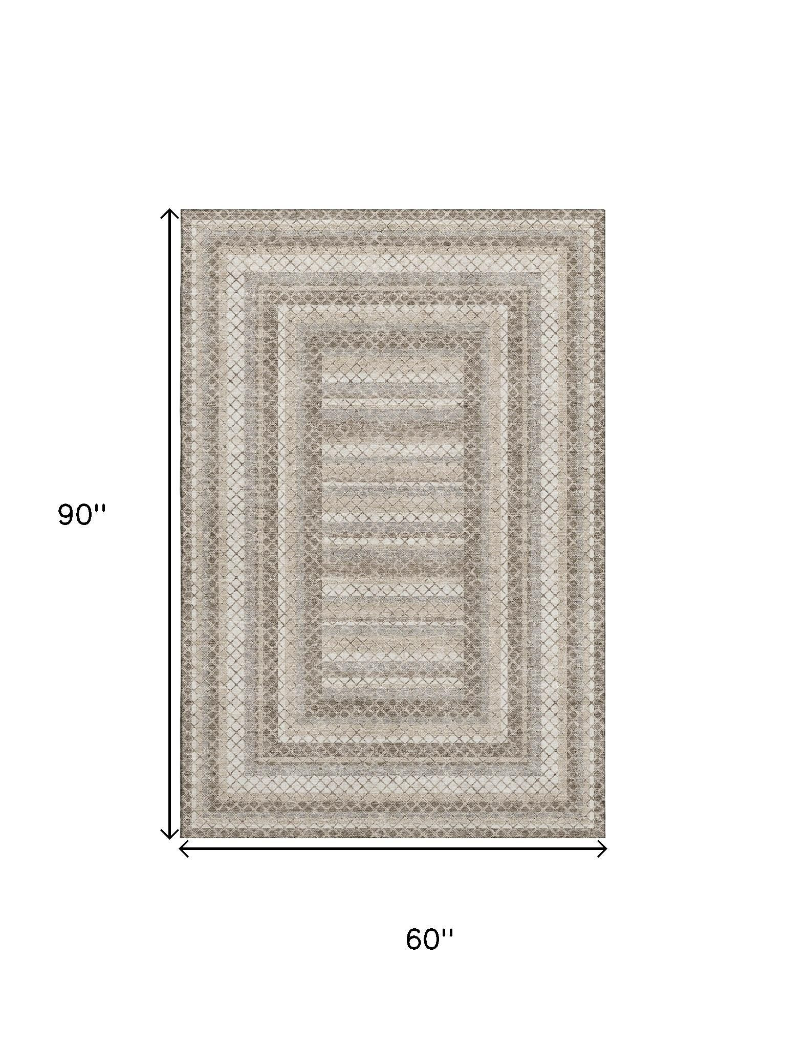 This 5-foot x 8-foot taupe ivory and gray geometric washable area rug with uv protection, is a great way to add warmth to a room. Ideal for spaces with kids and pets, this rug is stain resistant to help repel dirt and spilled liquids. Built to last, this rug crafted from polyester fibers is known for its durability and long lasting appeal. Rugs are a great way to showcase your style, hide imperfections, warm your home and reduce noise. This larger sized, transitional styled rug is ready to create a focal point or statement piece in your room. 60.00-inch h x 90.00-inch w x 0.39-inch d.