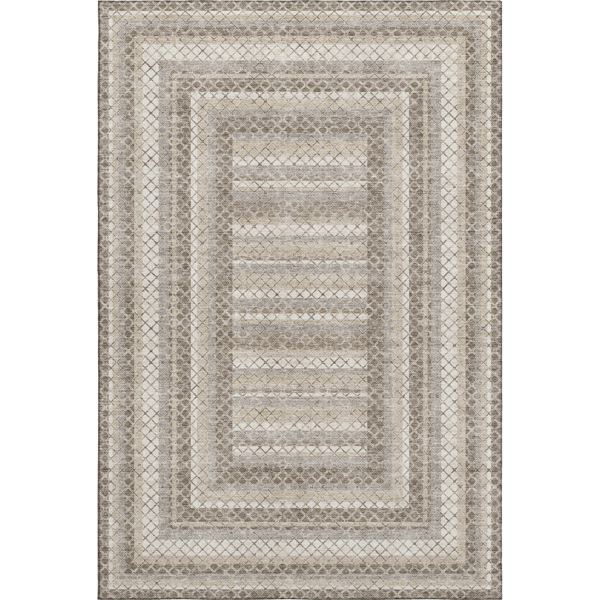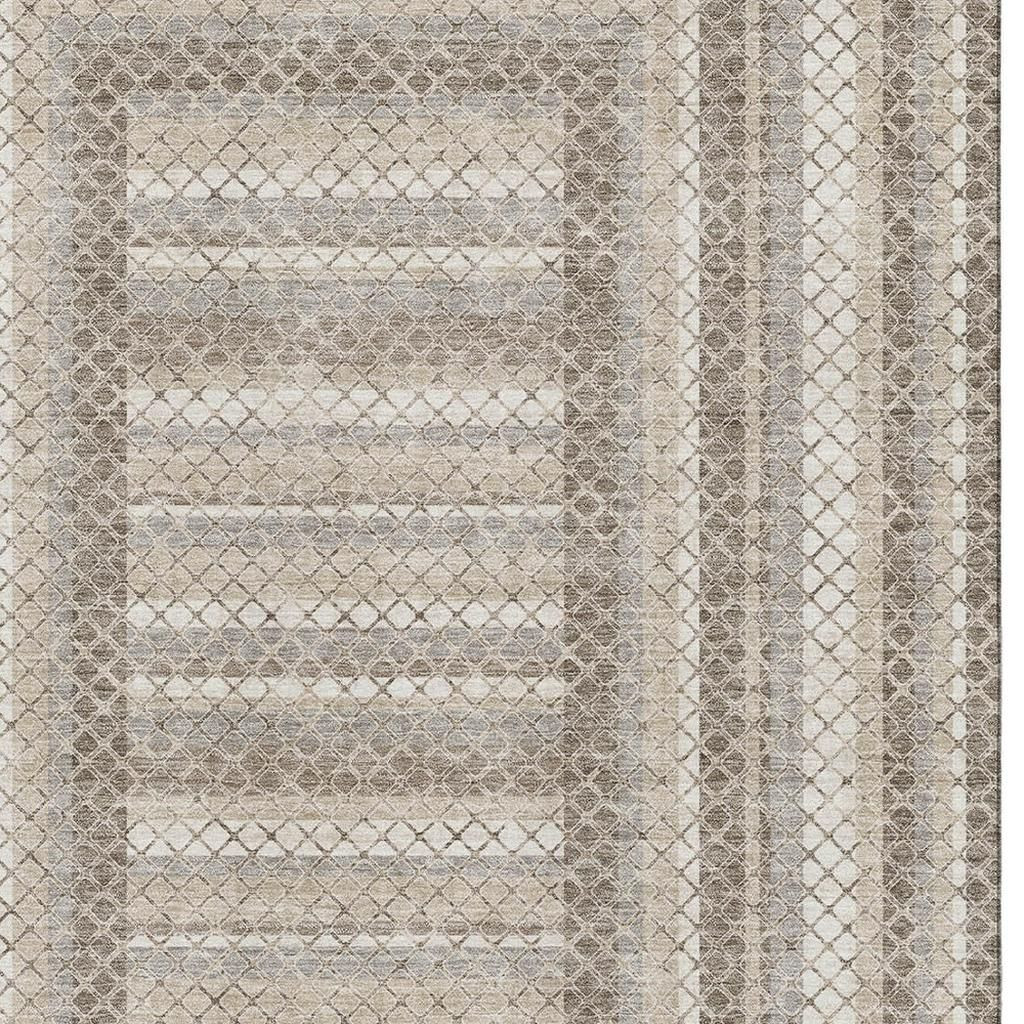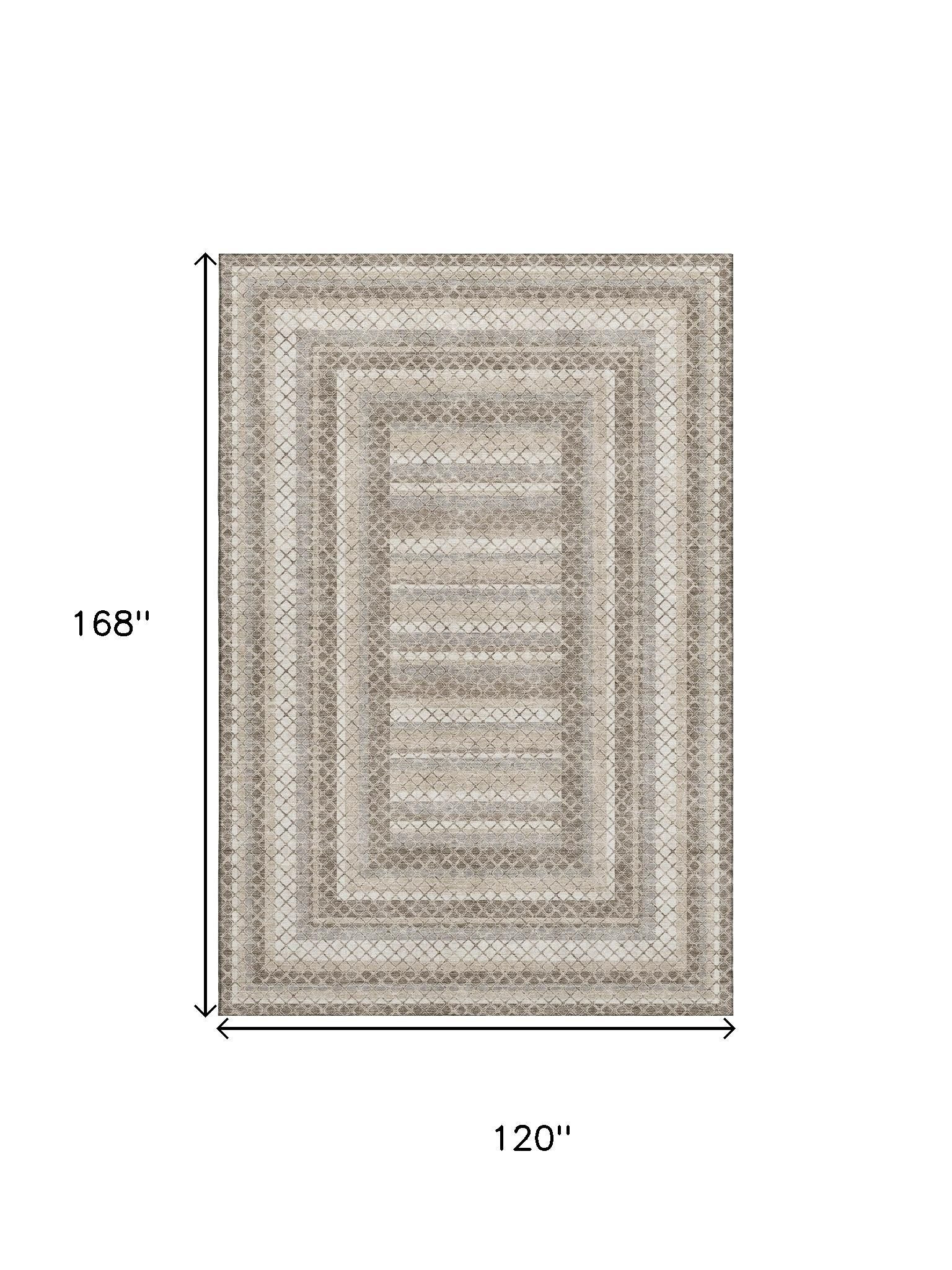 Add great coloration and comfortable texture to your space with this 10-foot x 14-foot taupe ivory and gray geometric washable area rug with uv protection. Ideal for spaces with kids and pets, this rug is stain resistant to help repel dirt and spilled liquids. Built to last, this rug crafted from polyester fibers is known for its durability and long lasting appeal. Rugs are a great way to showcase your style, hide imperfections, warm your home and reduce noise. This larger sized, transitional styled rug is ready to create a focal point or statement piece in your room. 120.00-inch h x 168.00-inch w x 0.39-inch d.